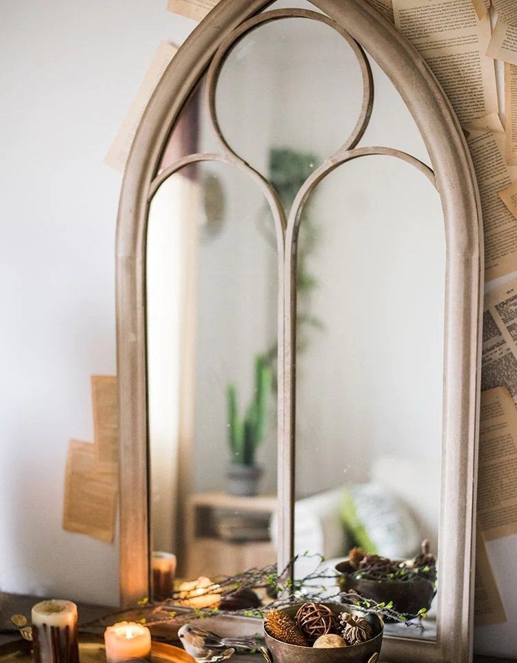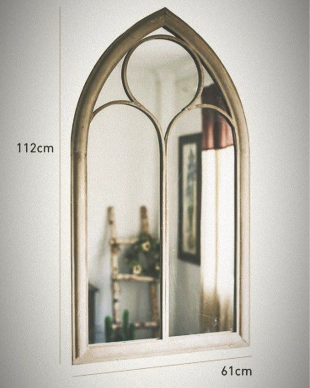 HEGES Cathedral Mirror is a type of decorative mirror characterized by its distinct shape, which is reminiscent of the arched windows often found in cathedrals and other Gothic-style architecture. This mirror design is inspired by the grand and majestic appearance of cathedral windows, and it brings an air of elegance and sophistication to any space.