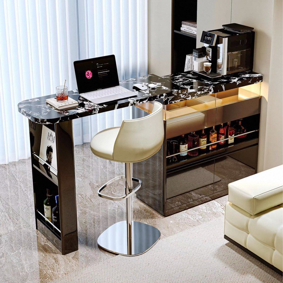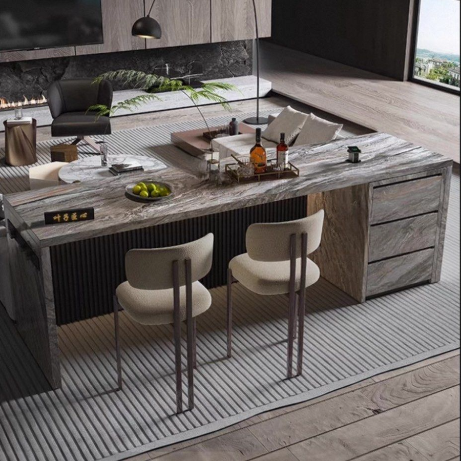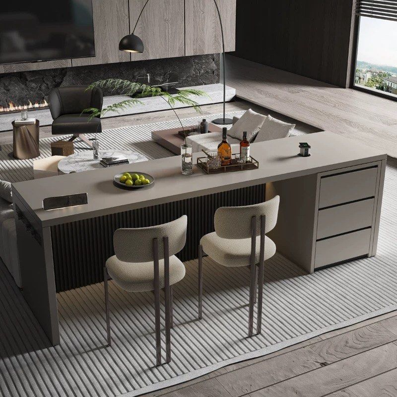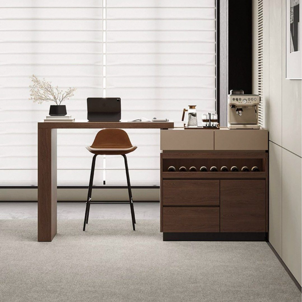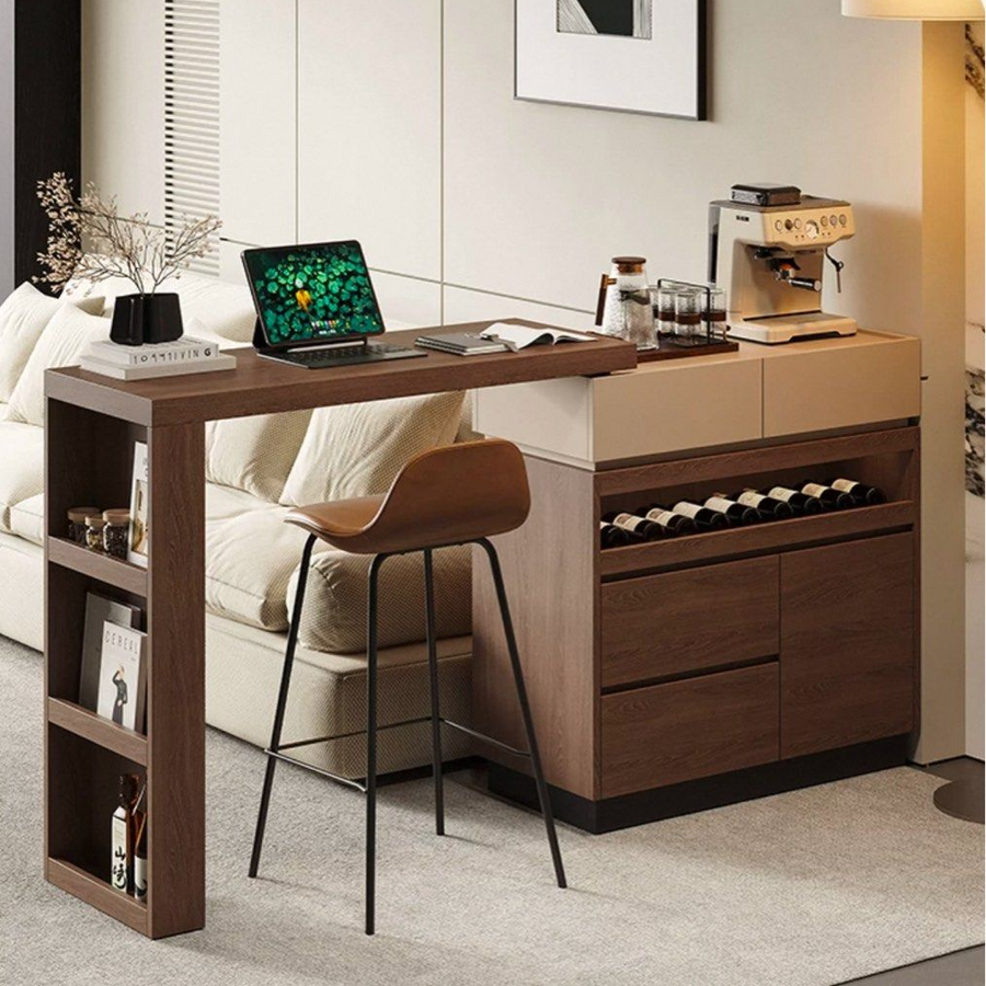 JOKIUN Modern Solid Wood Bar Table With Storage