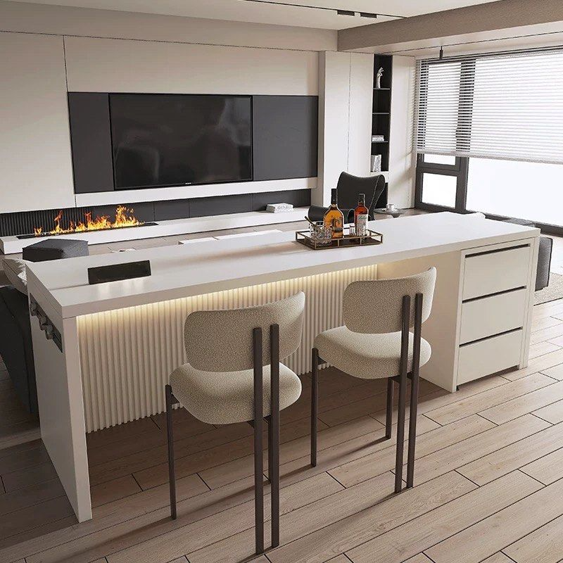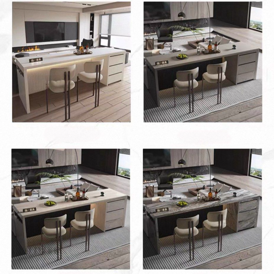 Our ALRIC bar island table features a durable sintered stone top in various finishes, and comes with an integrated side cabinet for storing kitchenware, keeping your space organized. Perfect for food preparation, dining, and socializing, itβs designed to fit into any modern or classic kitchen layout. Available in multiple finishes, it suits open concept dining spaces or office pantries. Add extra counter space and storage to your kitchen with this spacious and multifunctional island table.