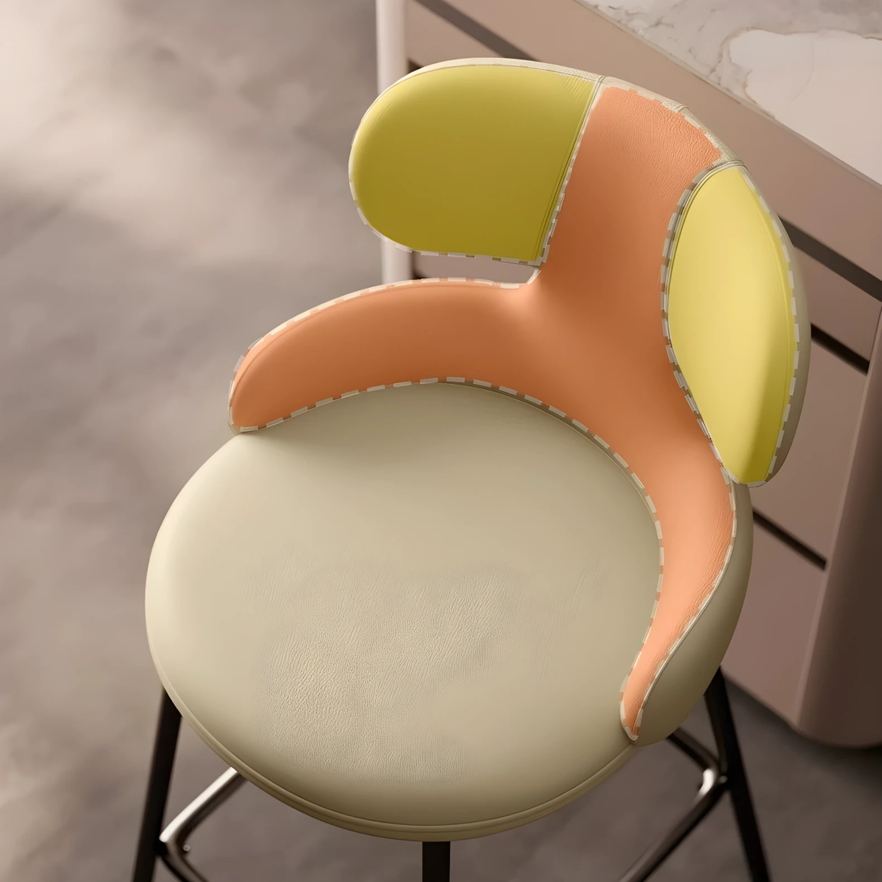 A premium upholstered bar chair featuring a plush, wrap-around backrest and thick cushioned seat for enhanced comfort. The high-density foam padding ensures long-lasting resilience, while the powder-coated metal frame with integrated footrest provides superior stability. With three seat height options (55, 65, 75 cm), it is adaptable for dining tables, kitchen counters, or bar setups. Its elegant design and versatile color palette make it suitable for modern homes, stylish cafés, and boutique lounges.