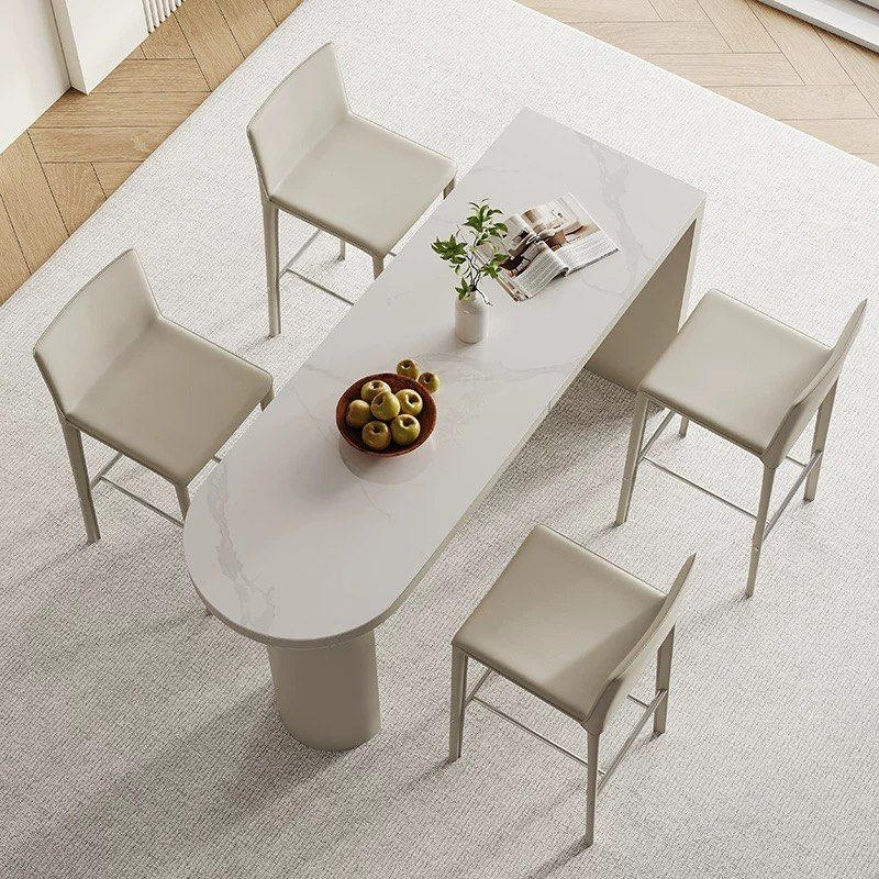 The MEUS Modern Sintered Stone Bar Table is a stylish and contemporary piece designed with durability in mind. It features a sleek sintered stone tabletop that is highly resistant to scratches, stains, and temperature changes, making it both practical and easy to maintain. The minimalist design, characterized by clean lines and subtle textures, allows it to seamlessly integrate into modern kitchens, dining areas, or bar spaces.