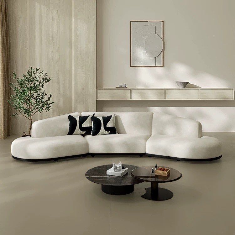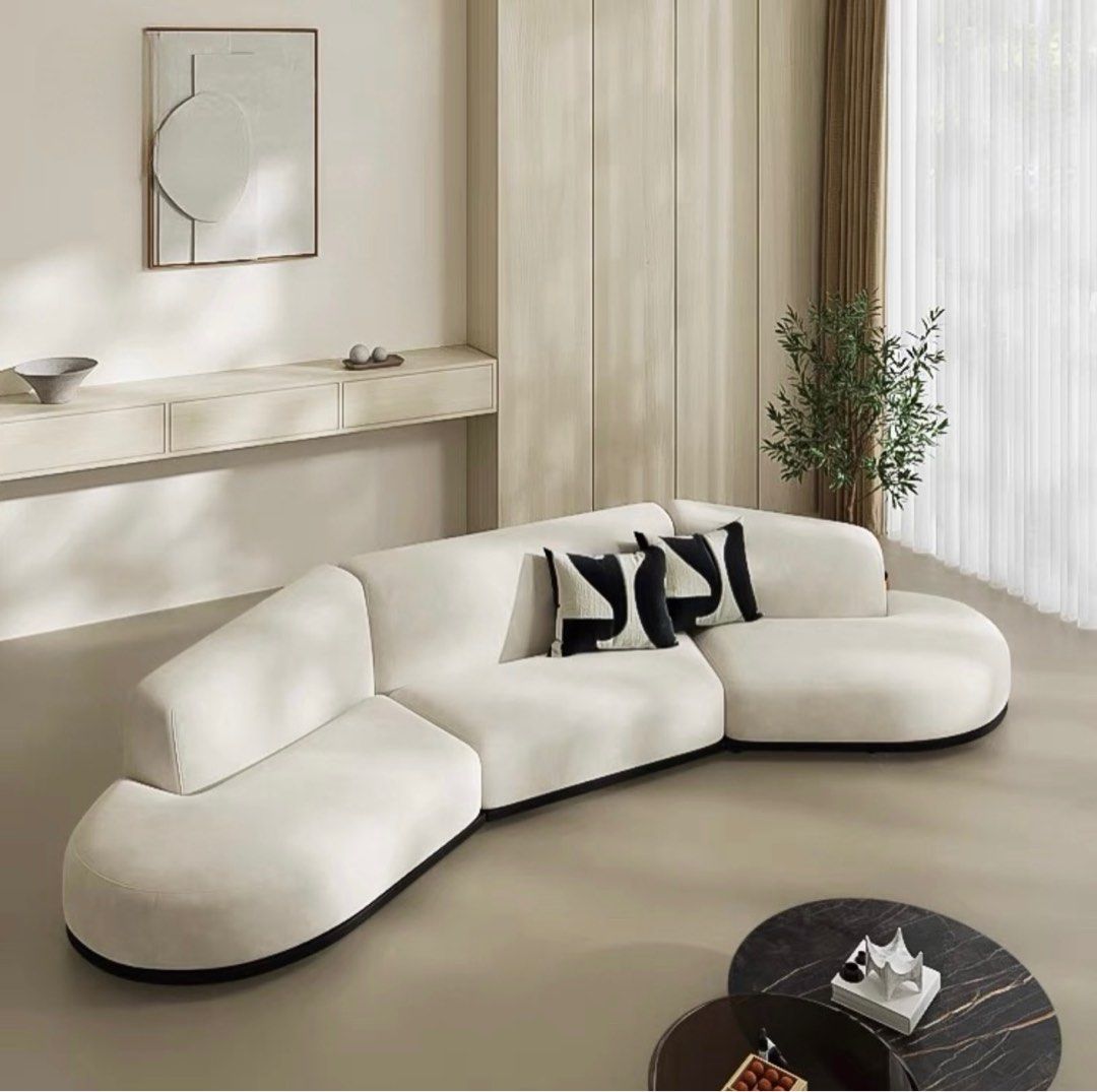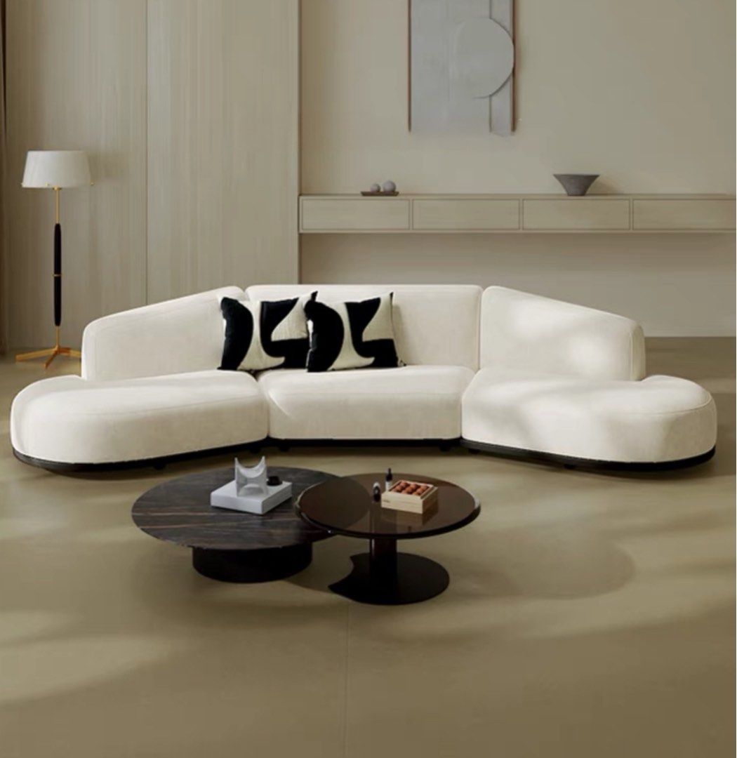 The AMARA Sectional Curve Sofa offers a blend of modern elegance and practical comfort, featuring a gently curved silhouette upholstered in performance boucle fabric. The boucle fabric is densely woven with a soft, looped texture that gives the sofa a cozy, inviting look. This performance-grade fabric is designed to resist stains, wear, and fading, making it ideal for active households while maintaining a luxurious appearance.