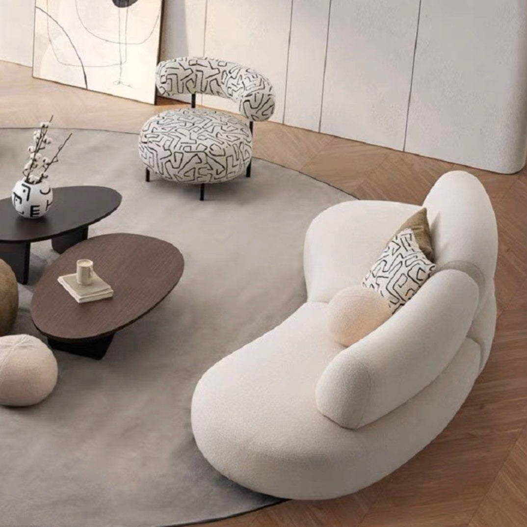 BOKEL Modern Curved Sofa is a contemporary seating solution known for its unique and stylish design, characterized by curved or rounded elements.