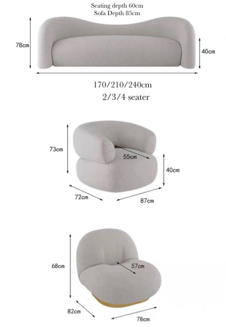 Performance boucle fabric , high resilience foam cushion & pine wood internal structure