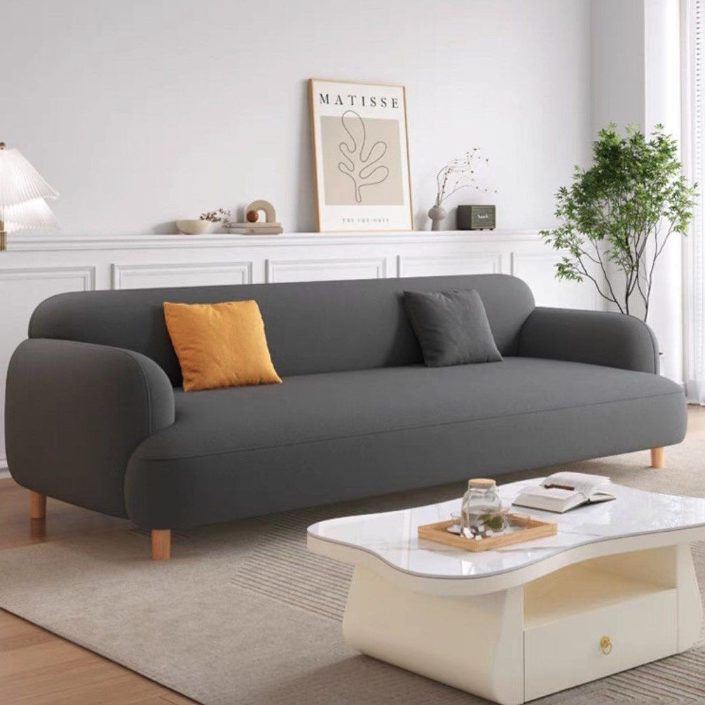 The ELYSIA Modern Boucle Sofa is a contemporary statement piece that effortlessly combines style and comfort. Upholstered in luxurious boucle fabric, known for its softness and texture, this sofa adds a touch of elegance to any living space. Its sleek and minimalist design features clean lines and tapered legs, creating a modern aesthetic. The generously cushioned seats and backrests offer exceptional comfort and support, making it perfect for lounging or entertaining guests.
