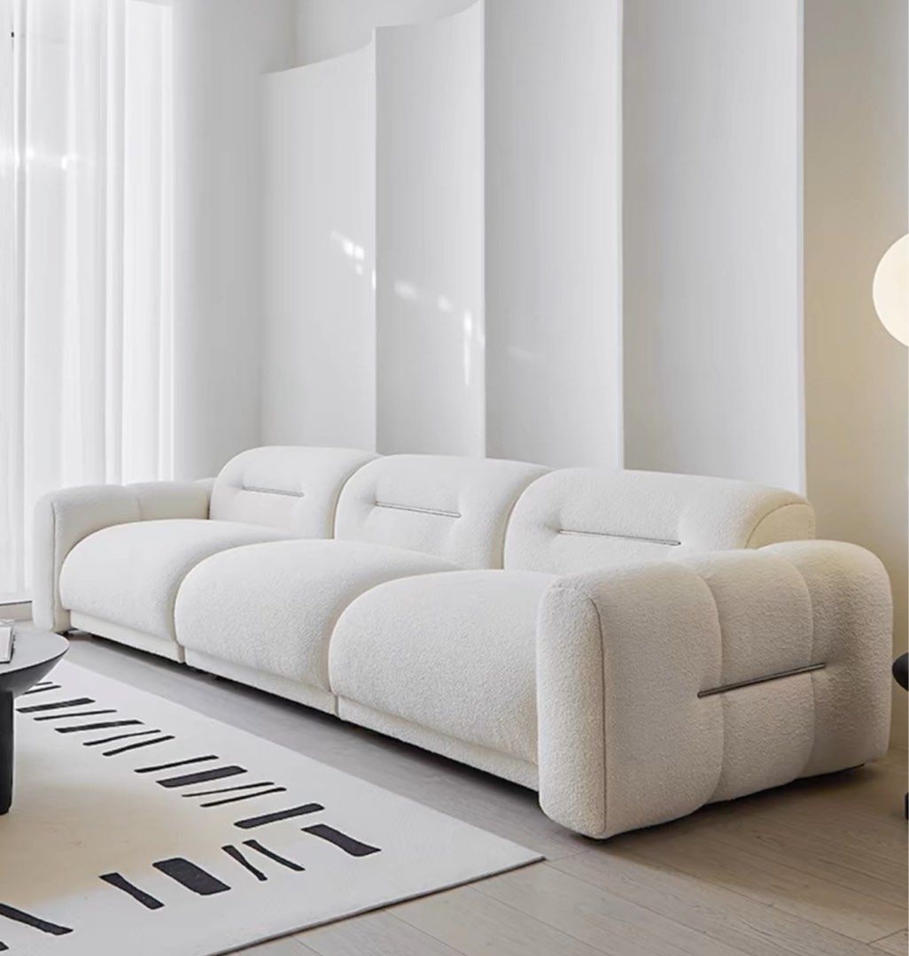 Boucle fabric , high resilience foam cushion & pine wood internal structure