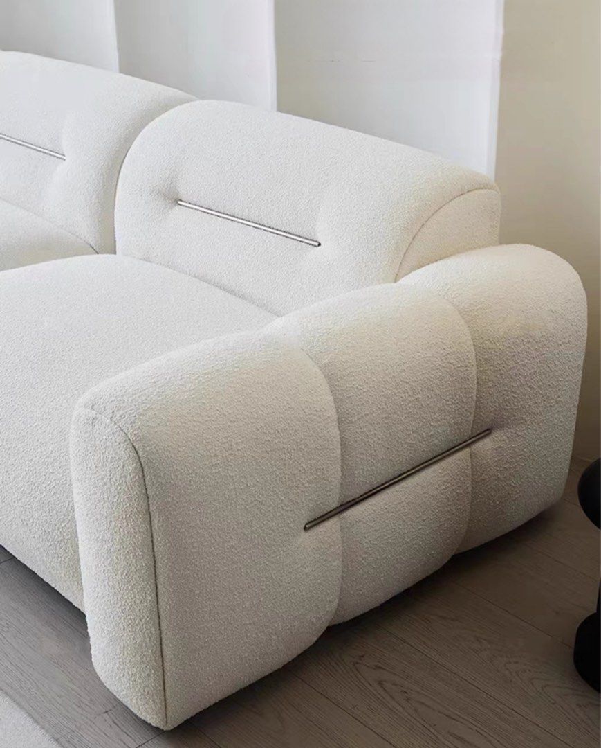 The TOVAS Performance Bouclé Sectional Sofa is a refined embodiment of modern luxury, crafted to bring elegance and functionality to any living space. Upholstered in high-performance bouclé fabric, it combines an irresistibly soft, textured feel with exceptional durability, designed to resist stains and wear while maintaining its plush appearance. Beneath its inviting exterior lies a robust pine wood internal structure, ensuring superior stability and long-lasting strength. The sofa’s high-resilience foam cushions are engineered for supreme comfort, offering a perfect balance of softness and support that effortlessly adapts to your lounging needs.