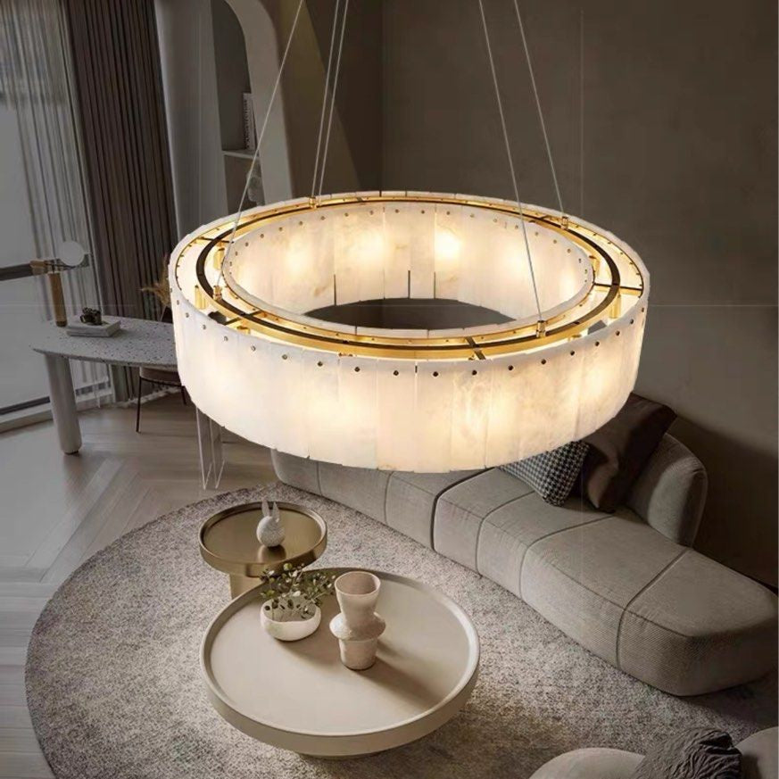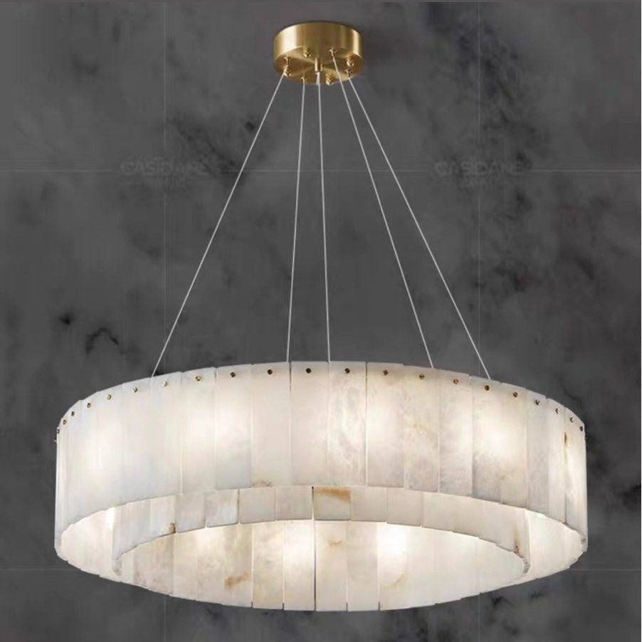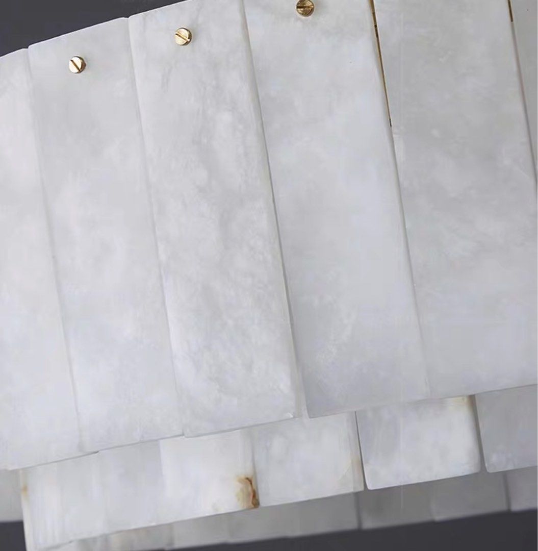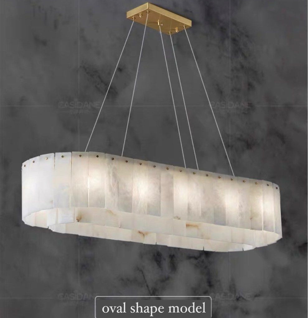The JODIS Modern Marble Chandelier is a luxurious lighting fixture crafted from high-quality H65 brass and exquisite Spanish marble. This chandelier combines contemporary design with elegant materials, featuring a sleek brass frame that provides a striking contrast to the smooth, polished marble elements. The H65 brass, known for its durability and attractive golden hue, forms the structural backbone of the chandelier, while the Spanish marble adds a touch of opulence with its unique veining and rich texture.