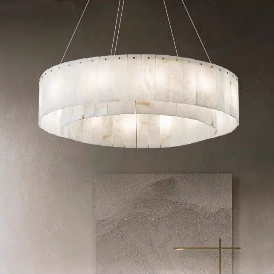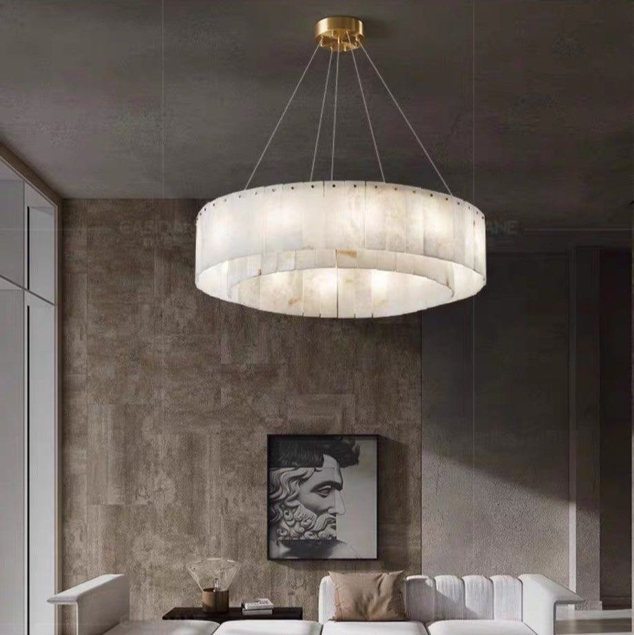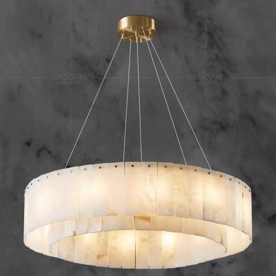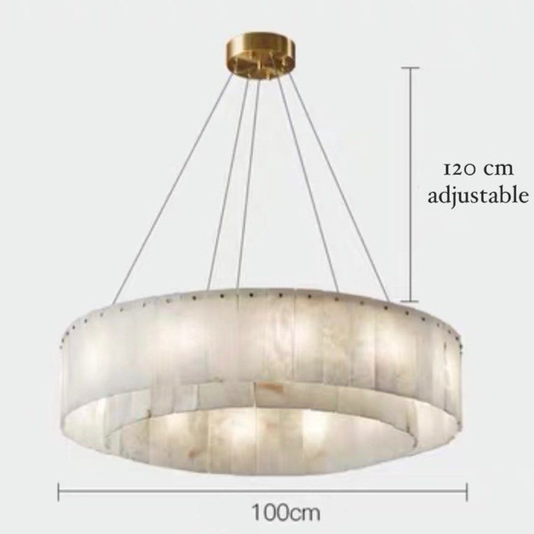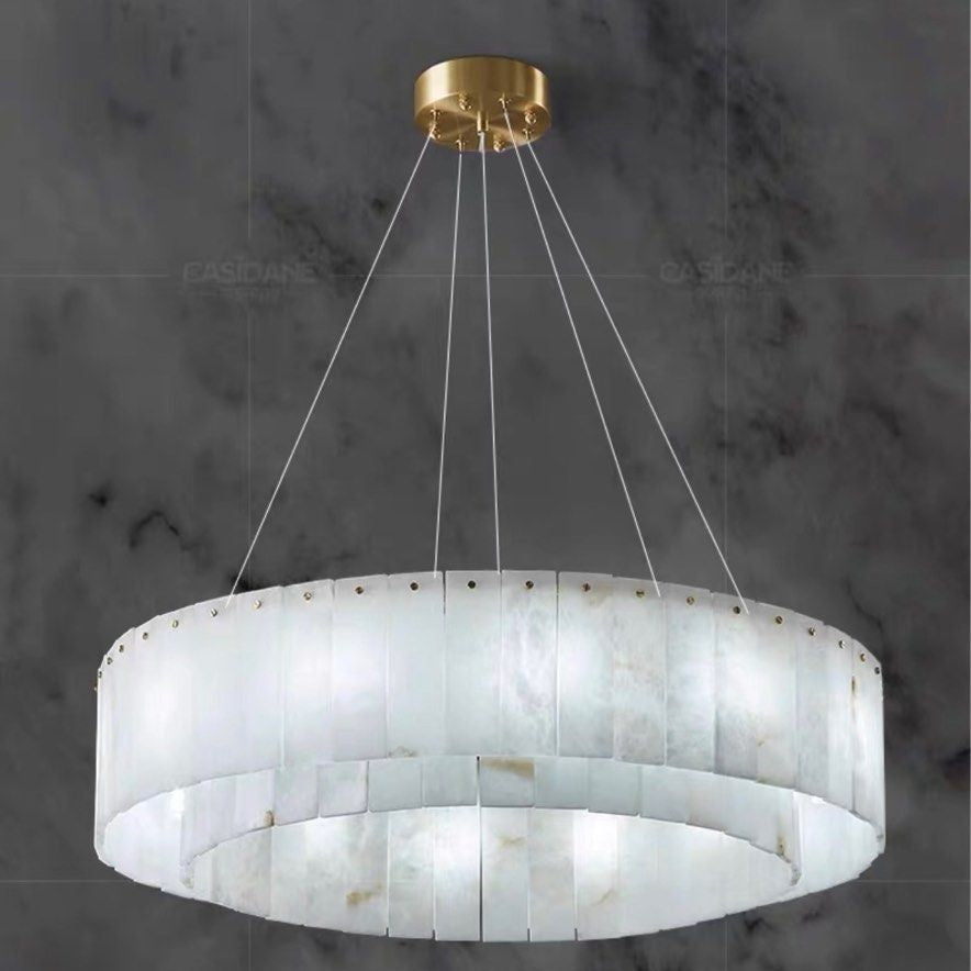The JODIS Modern Marble Chandelier is a luxurious lighting fixture crafted from high-quality H65 brass and exquisite Spanish marble. This chandelier combines contemporary design with elegant materials, featuring a sleek brass frame that provides a striking contrast to the smooth, polished marble elements. The H65 brass, known for its durability and attractive golden hue, forms the structural backbone of the chandelier, while the Spanish marble adds a touch of opulence with its unique veining and rich texture.