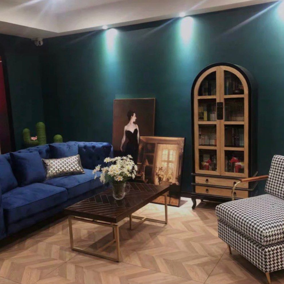 ALFIE herringbone solid wood coffee table is a stunning and artistic furniture piece that brings both elegance and texture to a room. The table’s surface is crafted from individual pieces of wood arranged in a herringbone pattern, forming a distinctive zigzag design that catches the eye.