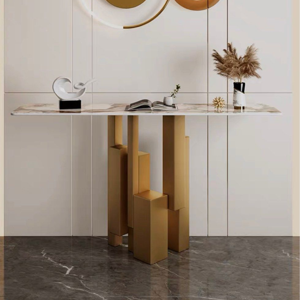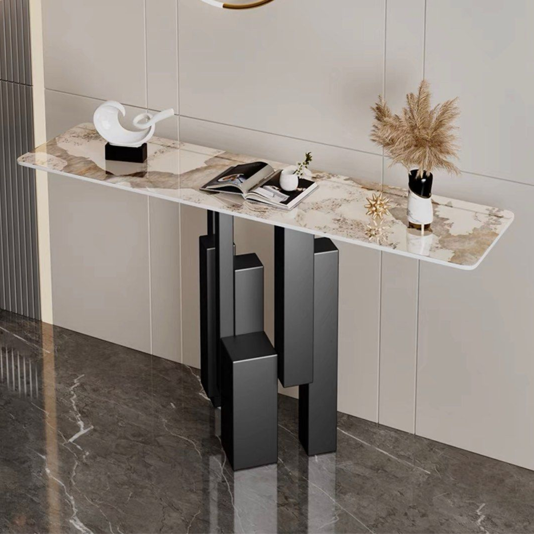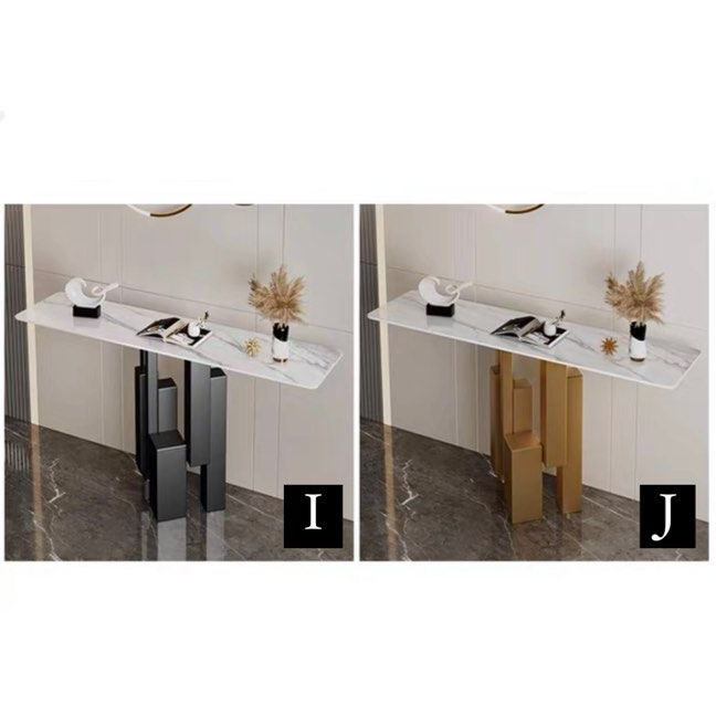 Looking for a stylish yet functional piece to elevate your home décor? Look no further than this modern glam marble console table. With its elegant shaped legs, this table will instantly add a touch of sophistication to any space. Perfect for small spaces, this table is ideal for entryways or any area where you need a functional surface. And not just a table, it is also a decorative piece of art that will enhance the beauty of your home. Dress it up with some flower pots or other exquisite decorations and transform it into a stunning focal point of your home décor. With its easy assembly, this table is a must-have for anyone who loves stylish and functional furniture.