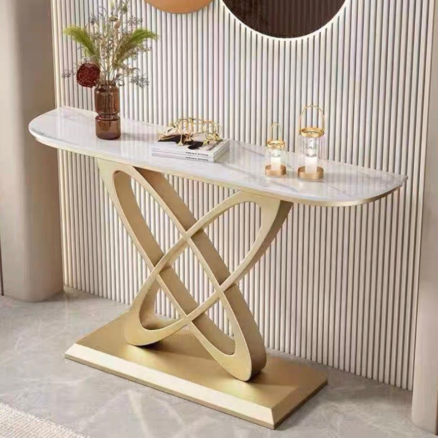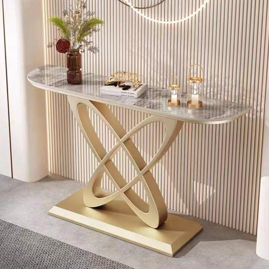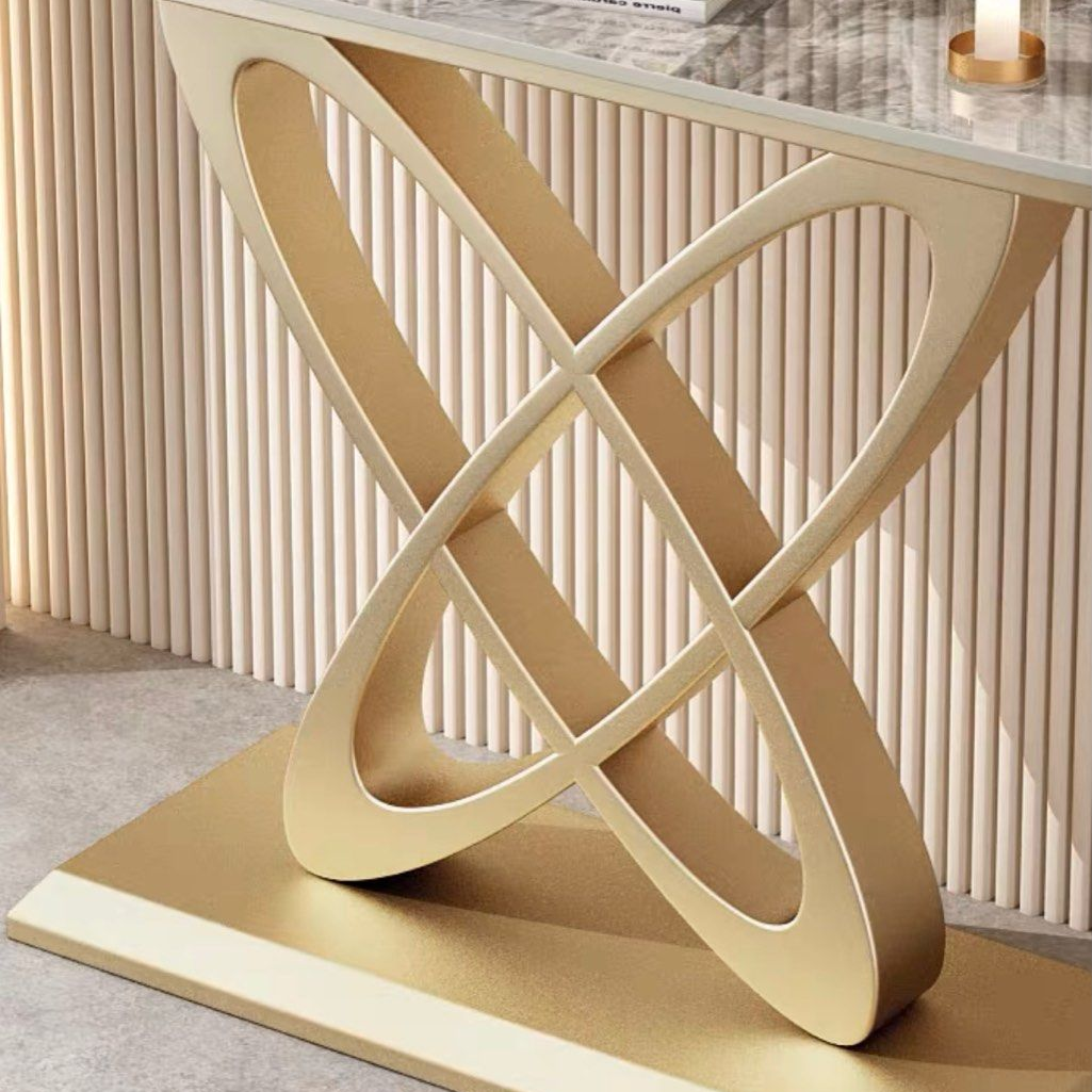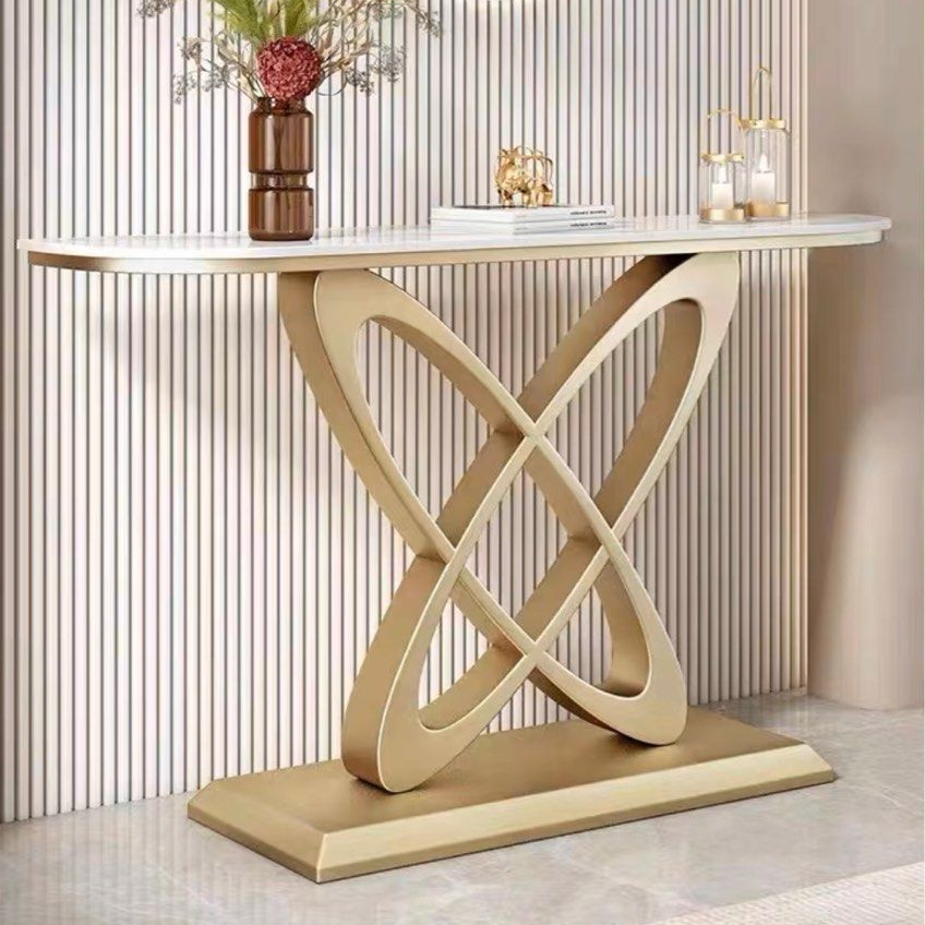 Looking for a stylish yet functional piece to elevate your home décor? Look no further than this modern glam marble console table. With its elegant shaped legs, this table will instantly add a touch of sophistication to any space. Perfect for small spaces, this table is ideal for entryways or any area where you need a functional surface. And not just a table, it is also a decorative piece of art that will enhance the beauty of your home. Dress it up with some flower pots or other exquisite decorations and transform it into a stunning focal point of your home décor. With its easy assembly, this table is a must-have for anyone who loves stylish and functional furniture.