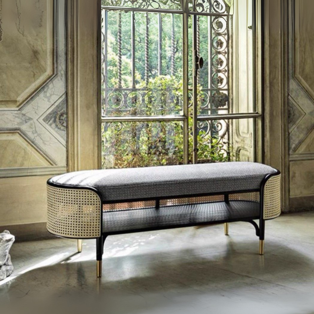 LILOU Vintage Rattan Dining Bench