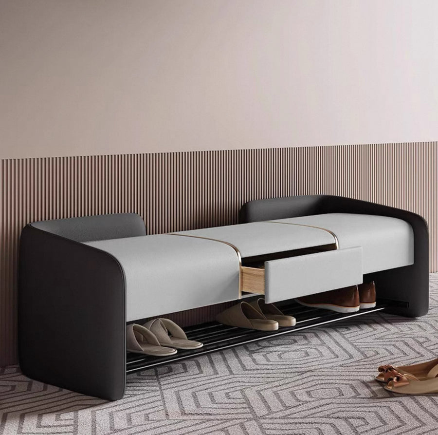 DEVONSHIRE Modern Leather Bench With Drawer