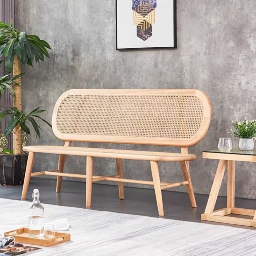 ALFEIM Rustic Ash Wood Rattan Bench