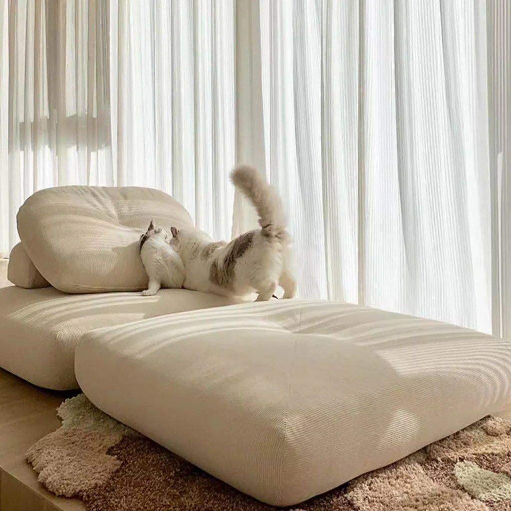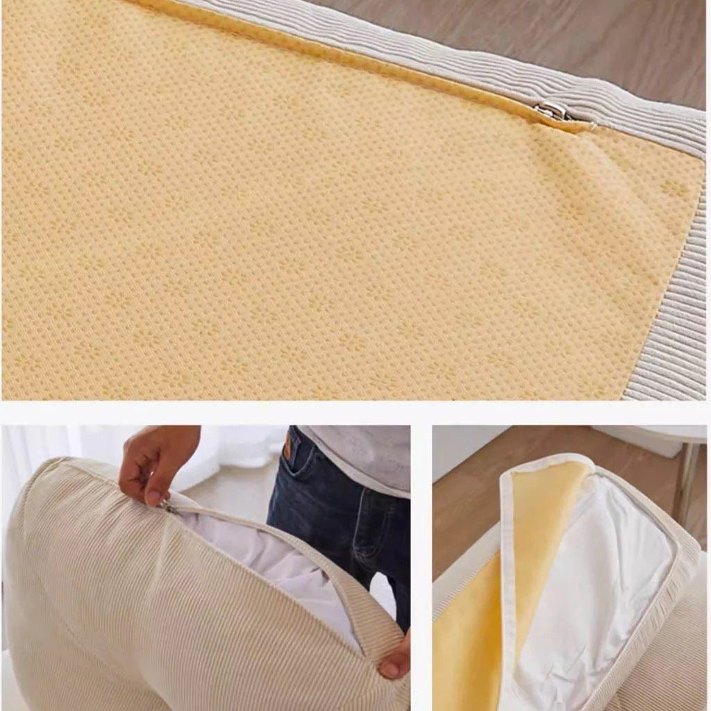 Spill and stain resistant corduroy + foam structure. Removable, machine-washable cover.