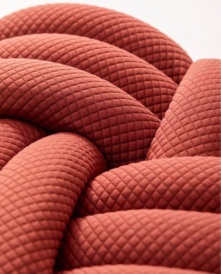 The LYKA Modern Designer Lounge Chair features a striking and contemporary design characterized by its use of tightly woven rope elements. The standout feature being the intricately knotted or braided rope that wraps around the structure. This rope detailing adds a unique texture and visual interest, offering a sophisticated yet relaxed vibe.
