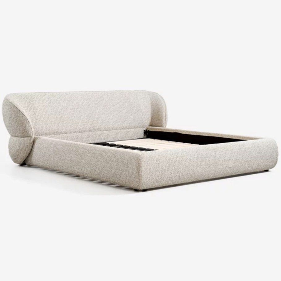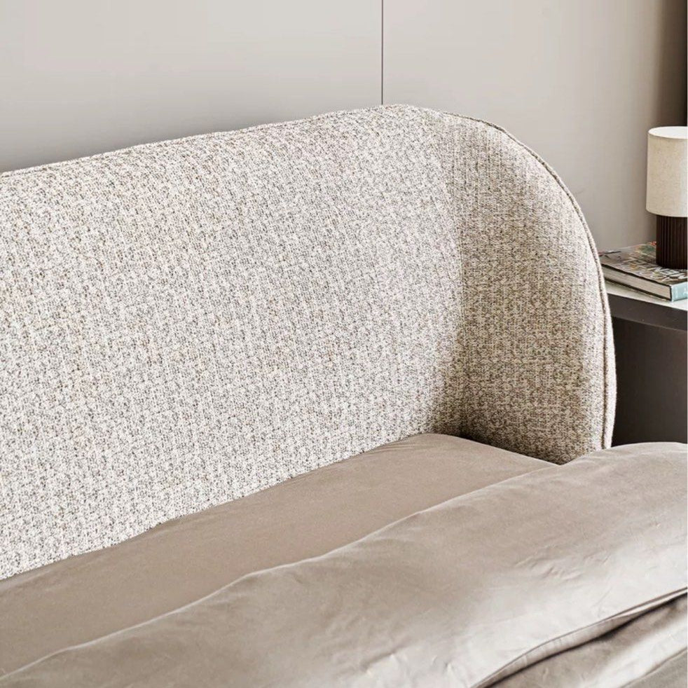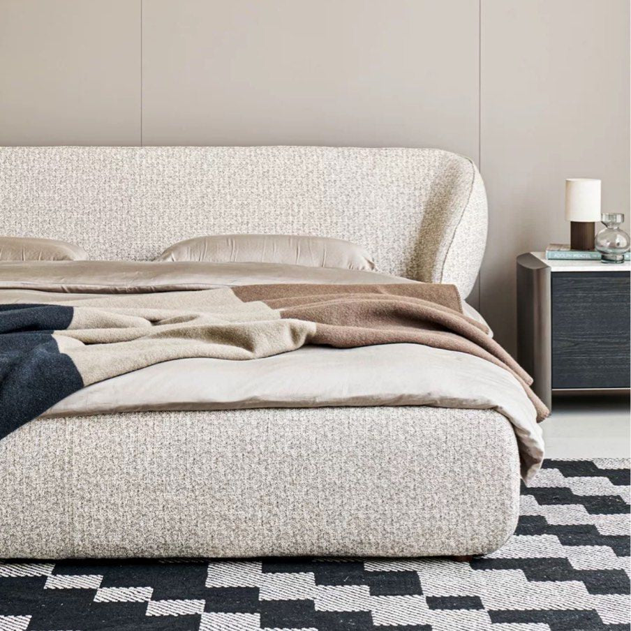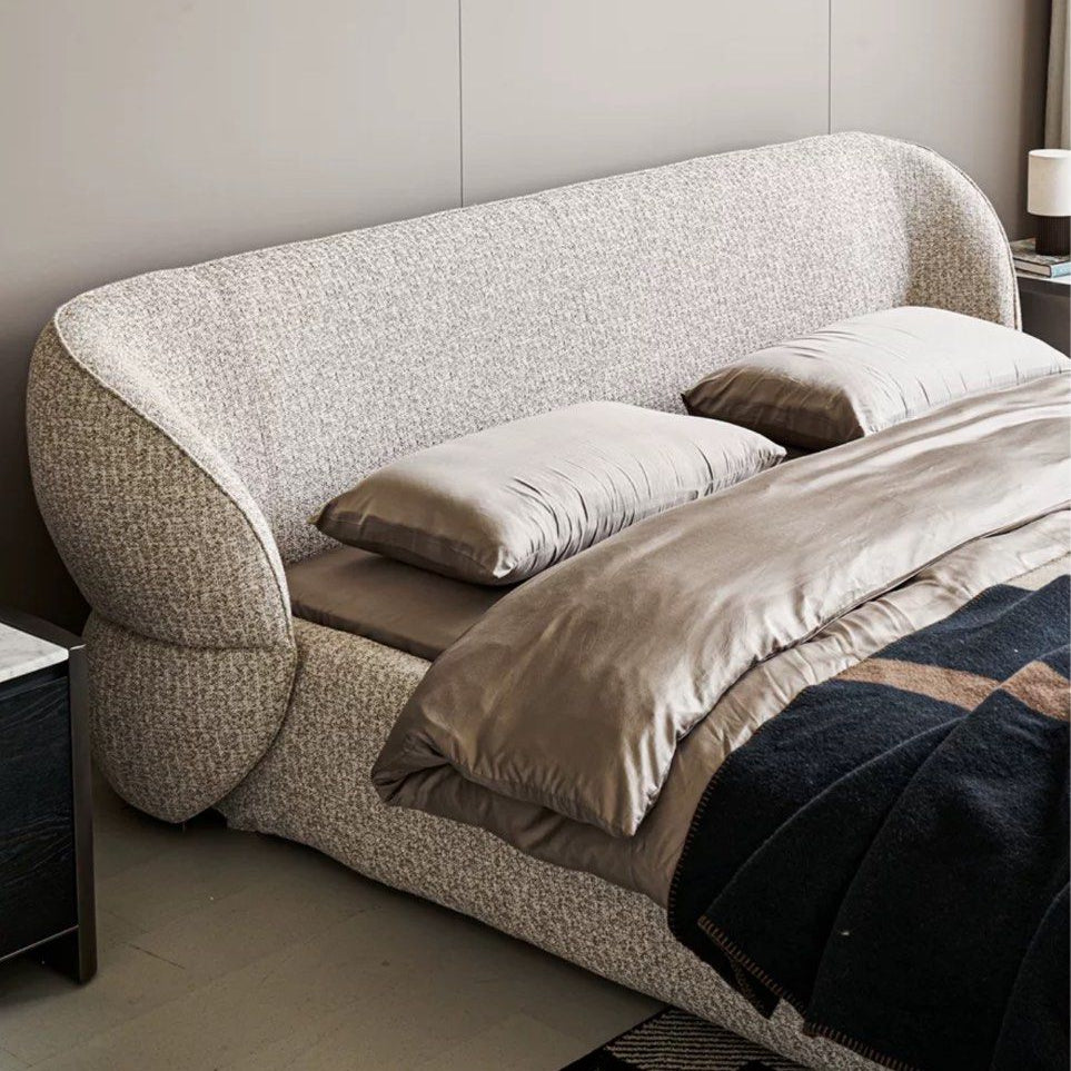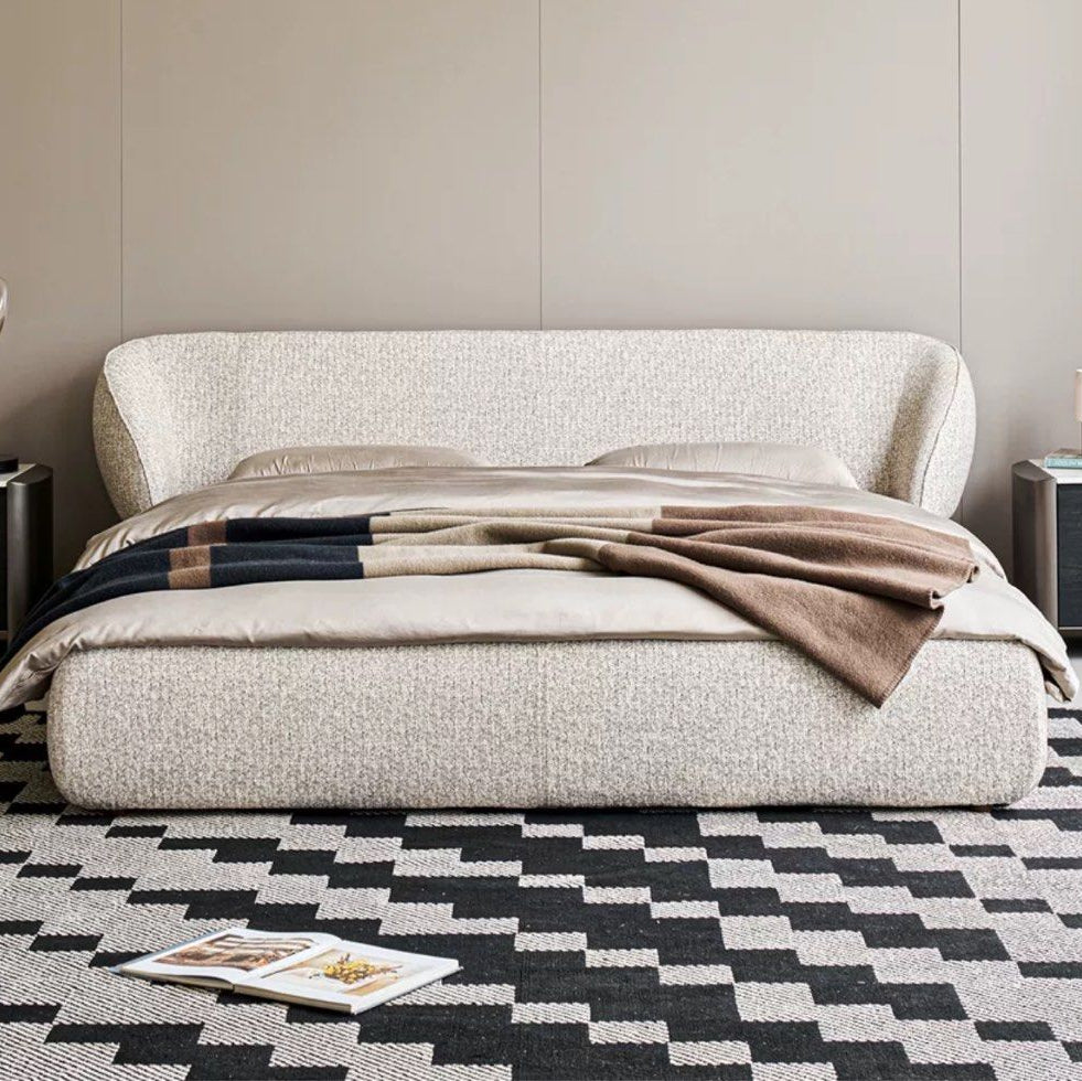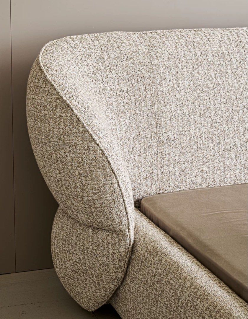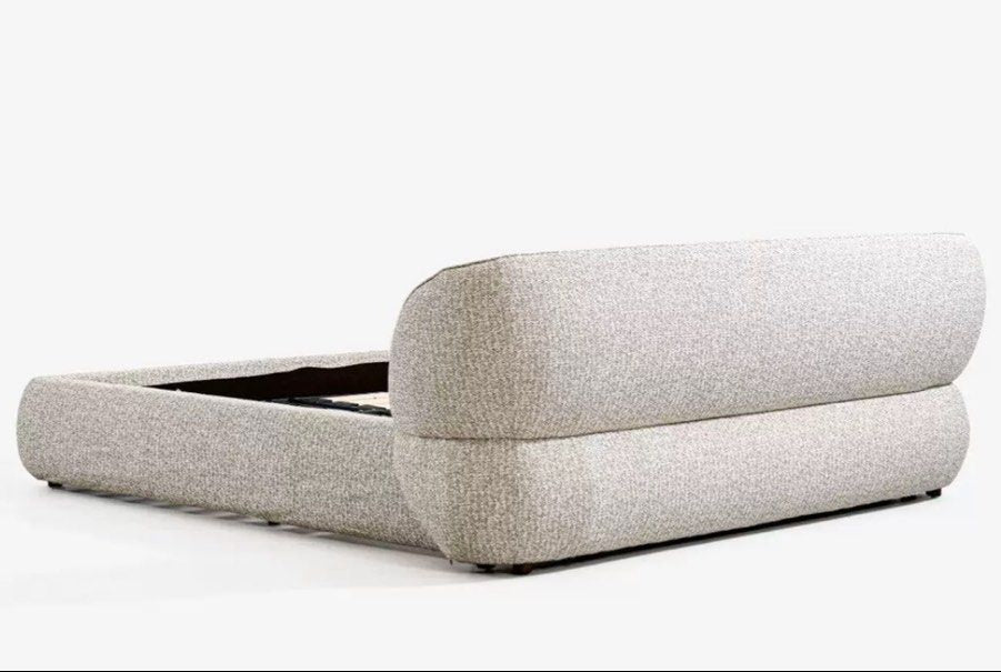 The LEWIS Modern Fabric Bedframe boasts a sophisticated design, combining comfort and durability. Its frame is constructed from sturdy pine wood, providing a reliable internal structure. The bedframe is upholstered with a premium cotton linen blend, offering a touch of luxury and a soft feel. This combination of materials creates a stylish and durable piece, elevating the ambiance of any bedroom.