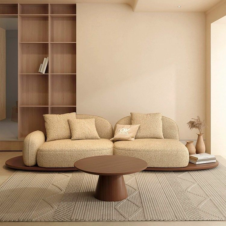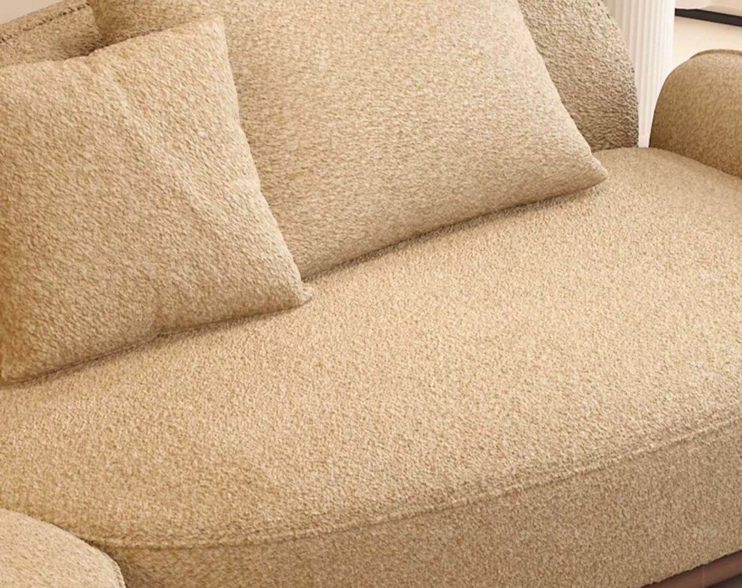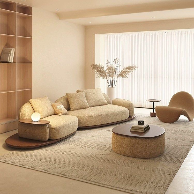 Embodying the AZUMA Japandi aesthetic, our AZUMA sofa boasts a sturdy wooden frame for dependable support. Its pebble-shaped backrest and seats soften the room’s linear lines, offering a calming touch. Perfect for lounging or entertaining, this sofa includes an integrated side table and platform for displaying a night light or ornaments. Upholstered in premium fabric, it complements any modern, Hygge, or Wabi Sabi decor, delivering a practical and stylish seating solution for your home.