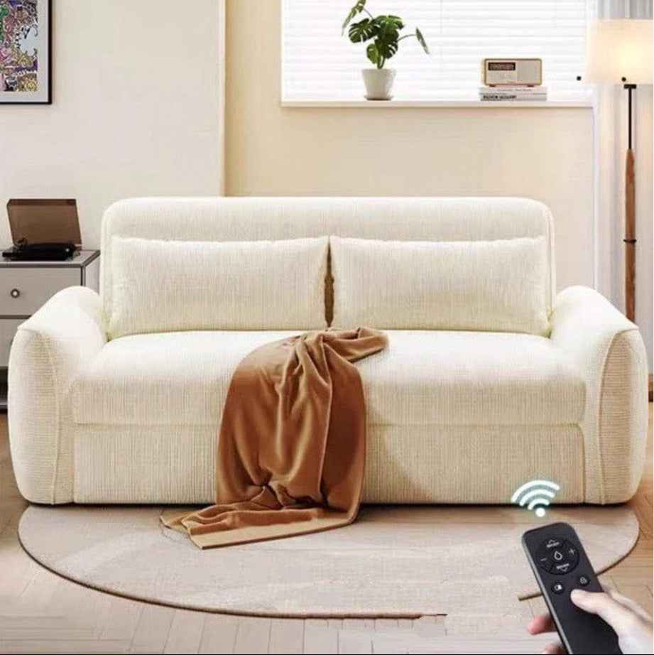 The LYKE Modern Electric Sofa Bed is a multifunctional piece of furniture designed for contemporary living spaces. It features a sleek, modern design and can transform from a sofa to a bed with the push of a button, offering convenience and comfort. Made with durable, easy-to-clean materials.