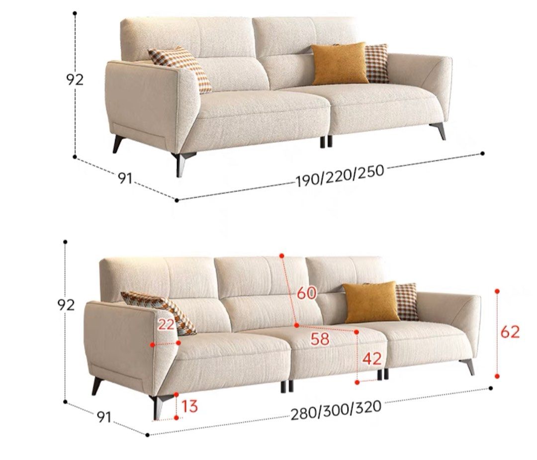 Incorporating a minimalist and elegant design with a structured silhouette and tall backrest, our VARELLO sofa showcases a solid wood internal structure and high-density foam infill for ultimate comfort. Its high-quality fabric upholstery complements the sleek black metal legs, resulting in a well-balanced and visually appealing piece. This sofa serves as a striking centerpiece for modern, minimalist, or hotel-inspired living spaces, adding a touch of sophistication and charm to any environment.
