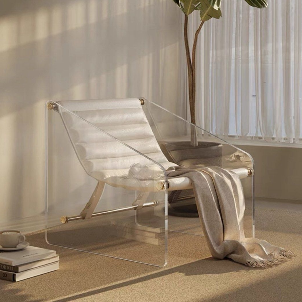 Presenting our EUNBI leisure chair, combining durability with a modern aesthetic. The acrylic frame infuses a sleek touch, guaranteeing enduring functionality. Whether in a living room, bedroom, or office, this reading chair seamlessly enhances modern, minimalist, contemporary, or Japandi interior designs. Featuring an ergonomic build and a cushioned seat, it delivers supreme comfort for both relaxation and work purposes.