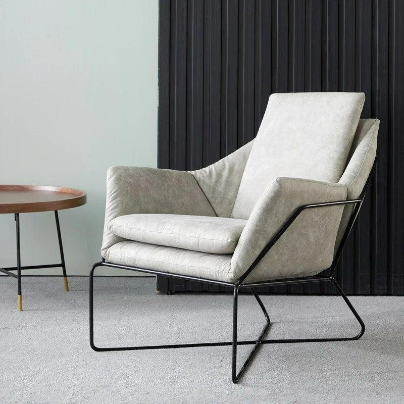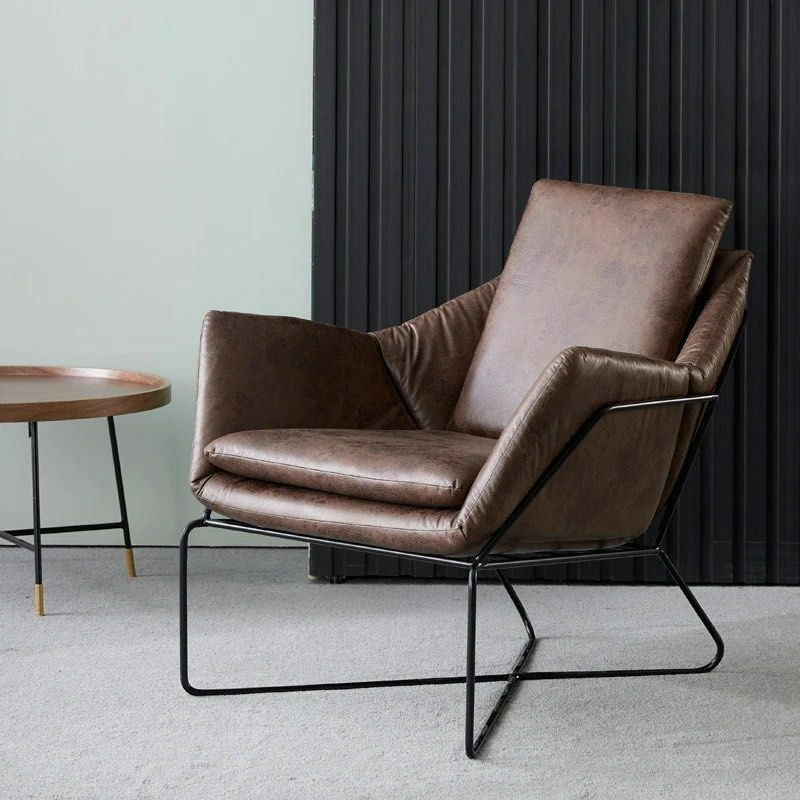For any TV aficionado, a comfortable armchair is a must-have to round out their living room. Fortunately, this armchair is here to lend a hand, or rather, arms. Resting on a sleek metal cross, this piece boasts an open design. The armchair is expertly upholstered in foam-filled leather and accentuated with piped seams and button-tufted details, providing it with an inviting and charming appearance.