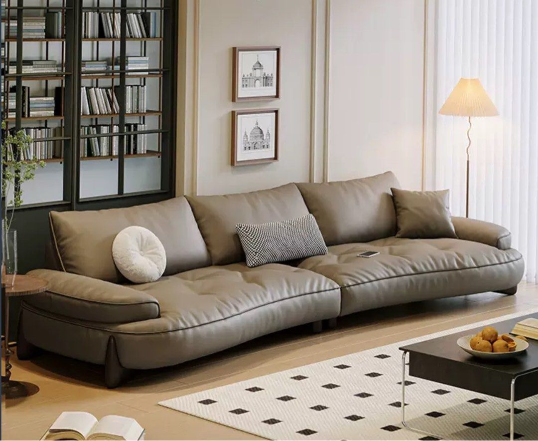 Indulge in luxurious comfort with the ALMIRA Modern Leather Sofa, featuring genuine leather upholstery, a high resilience foam cushion, and a sturdy pine wood internal structure. The rich texture of genuine leather adds sophistication, while the high resilience foam ensures a plush and supportive seating experience. The pine wood internal structure provides durability and stability, making this sofa a timeless and stylish centerpiece for your living space.