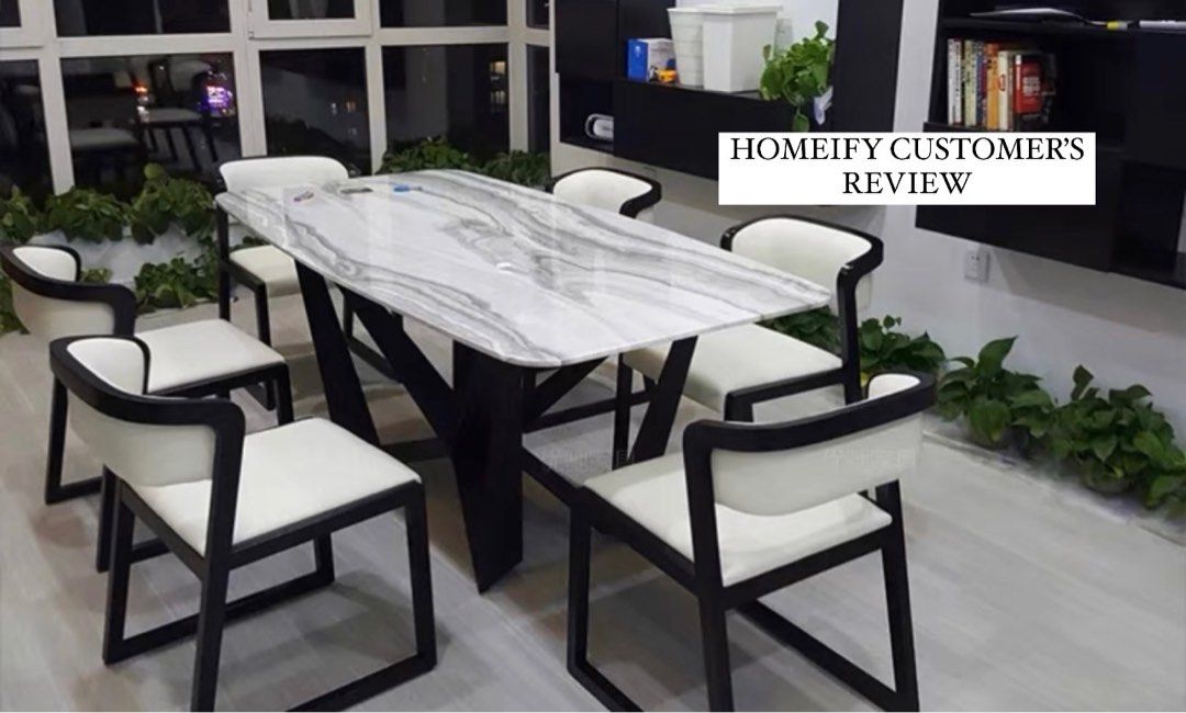 Elevate your home’s ambiance with the ELSON Modern Marble Dining Table, a pinnacle of opulence. Its complete marble top and sleek black table legs offer a timeless and refined appearance. The table’s graceful curves and dignified structure exude a sense of sophistication, making it a seamless fit for any home. Bring home the ELSON Modern Marble Dining Table and indulge in luxury.