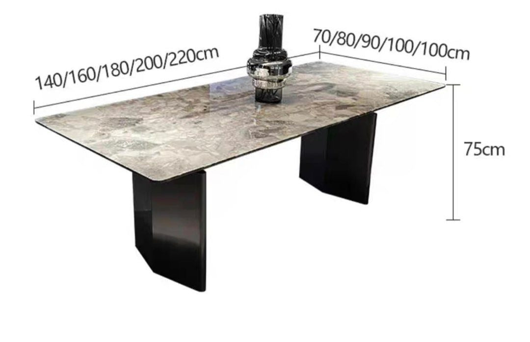 Redesign your dining area with this modern dining table featuring a luxurious natural marble top. The sleek design and exquisite veining patterns create a sophisticated focal point, adding a touch of opulence to your space. Elevate your dining experience with this stylish and durable marble table, seamlessly blending contemporary aesthetics with timeless elegance.