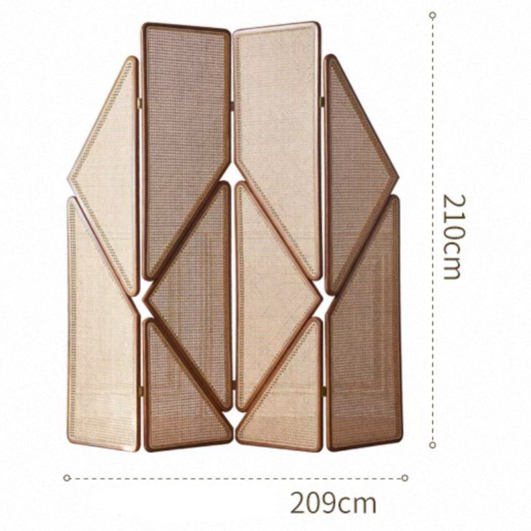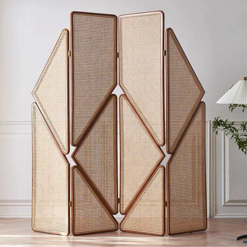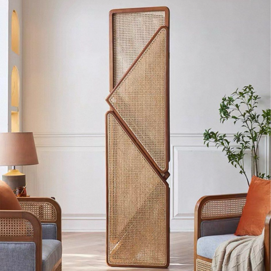 GRANGE Modern Rattan Partition features a sleek ash wooden frame available in two elegant finishes: a rich walnut color for a bold, sophisticated look, and a natural wood tone for a light, airy feel. The panel is crafted from handwoven natural rattan, adding texture and warmth while maintaining an open, breathable design. Perfect for creating subtle separation in open spaces, this partition blends seamlessly with modern, minimalist, or boho interiors. Made with high-quality, eco-friendly materials, it offers both functionality and timeless style.