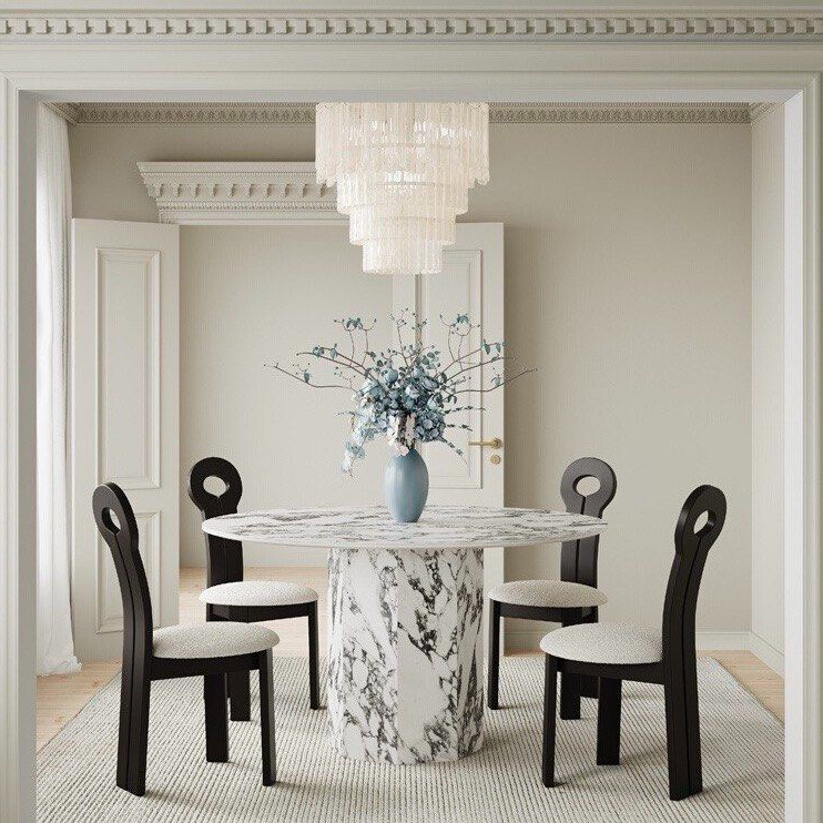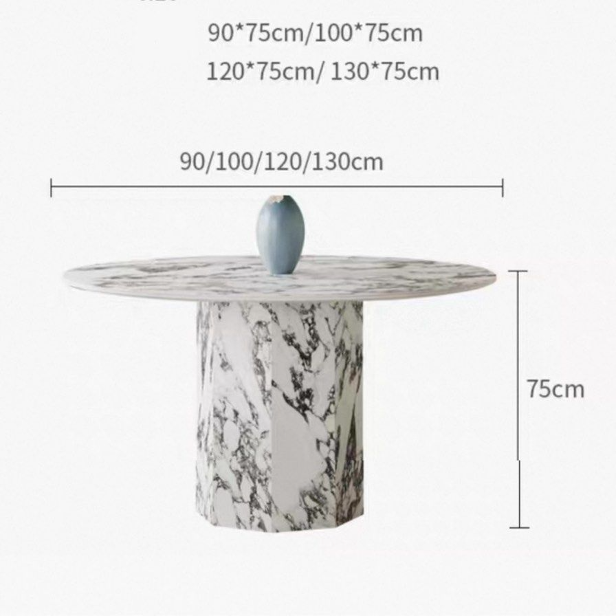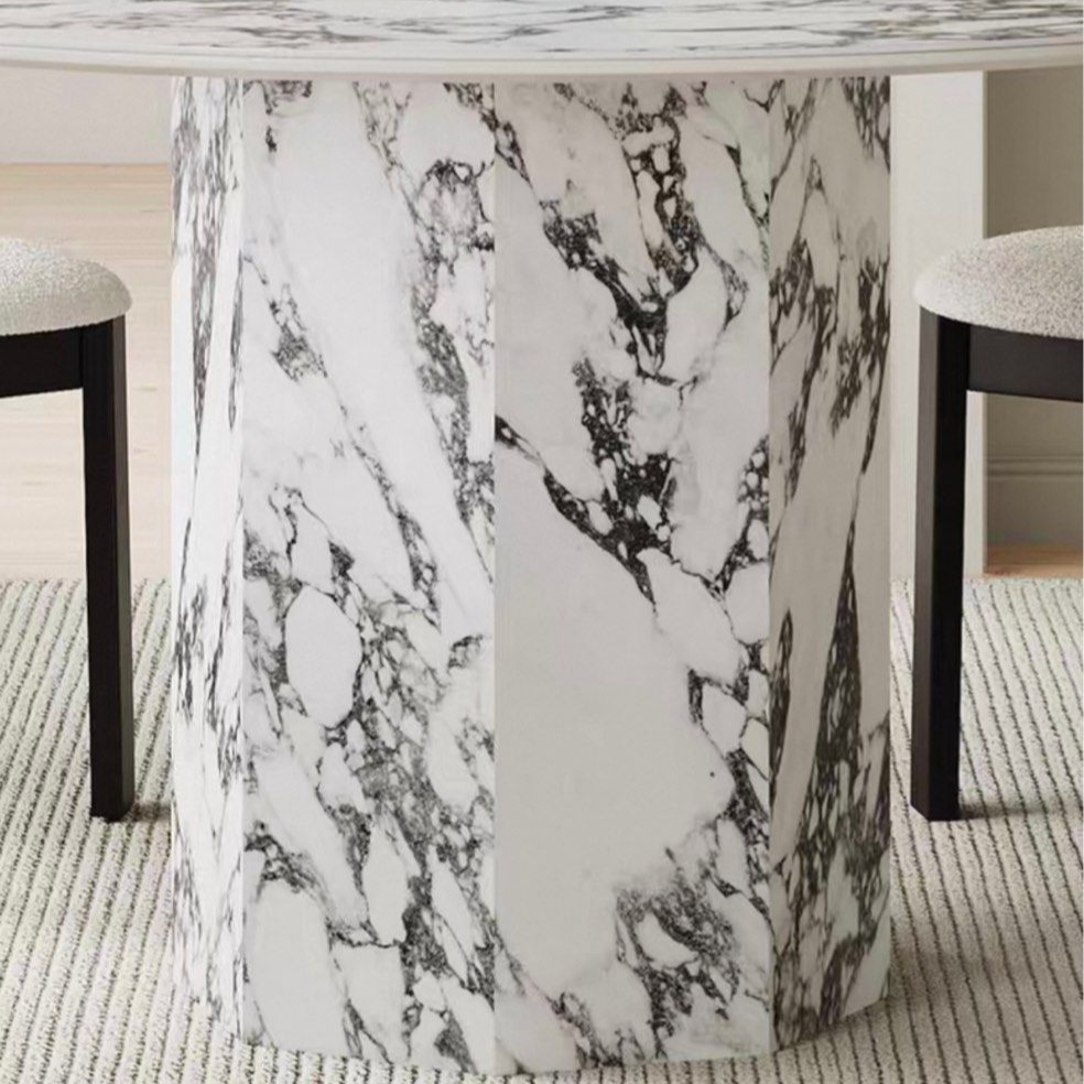 Impress your guests with the unique and luxurious VILDA Marble-Look Sintered Stone dining table. Crafted with sintered stone, this round table boasts a stunning marble look for a touch of elegance. Enjoy the durability and beauty of this one-of-a-kind dining table in your home.