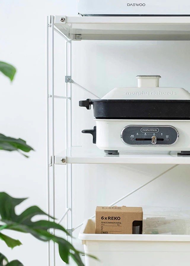BRYDEN White Metal Frame Rack is a functional and contemporary storage solution designed to provide organization and display options for various items. The rack’s primary structure is made from metal, which is sturdy, durable, and gives it a sleek, modern appearance. The metal frame is coated with a white finish, giving the rack a clean and minimalist look that complements a wide range of interior styles.