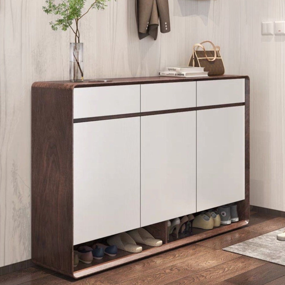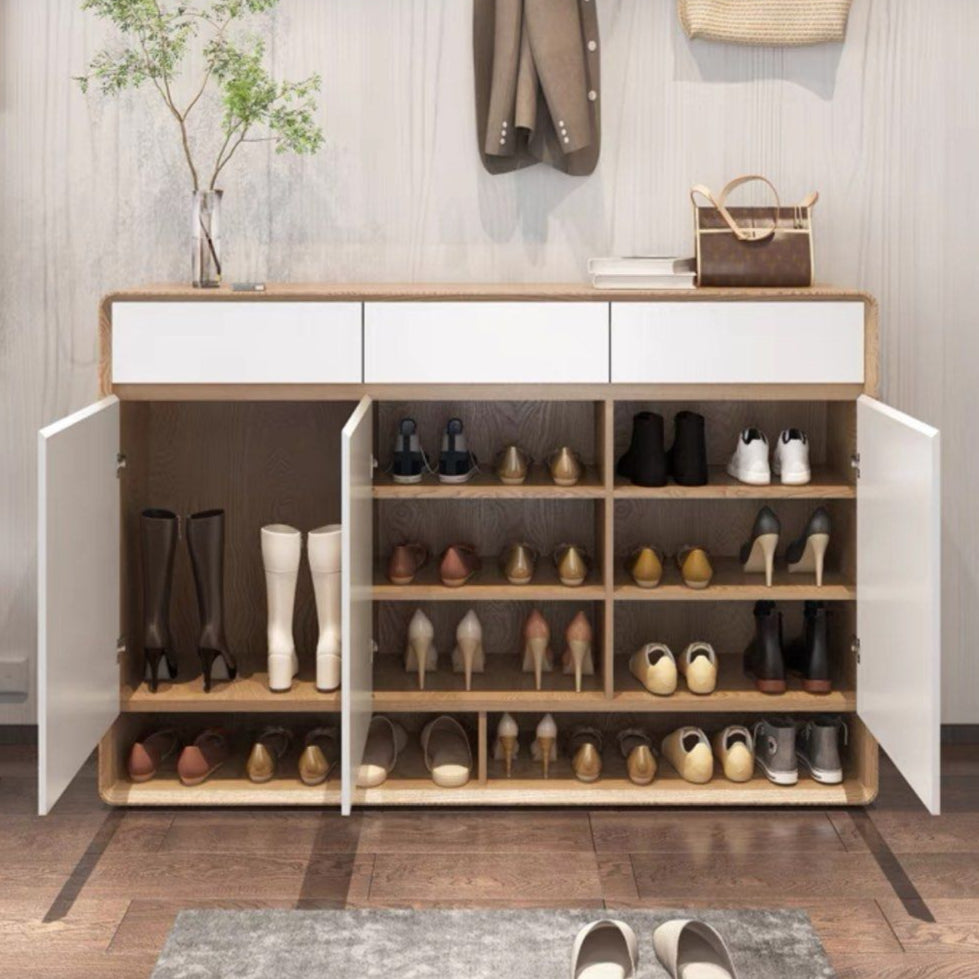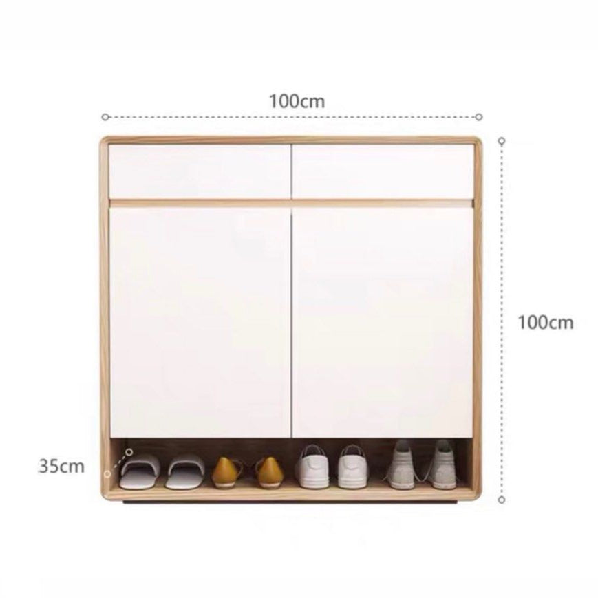 The REVA Modern Shoe Cabinet is a sleek and durable storage solution crafted from reinforced multi-layer solid ash wood board. Its sturdy construction ensures longevity and reliability for organizing your footwear collection. With a modern design, this shoe cabinet seamlessly integrates into various interior styles, adding both functionality and style to your entryway or bedroom. The ample storage space inside keeps your shoes neatly organized and easily accessible, while the solid ash wood exterior adds a touch of natural elegance to your living space.