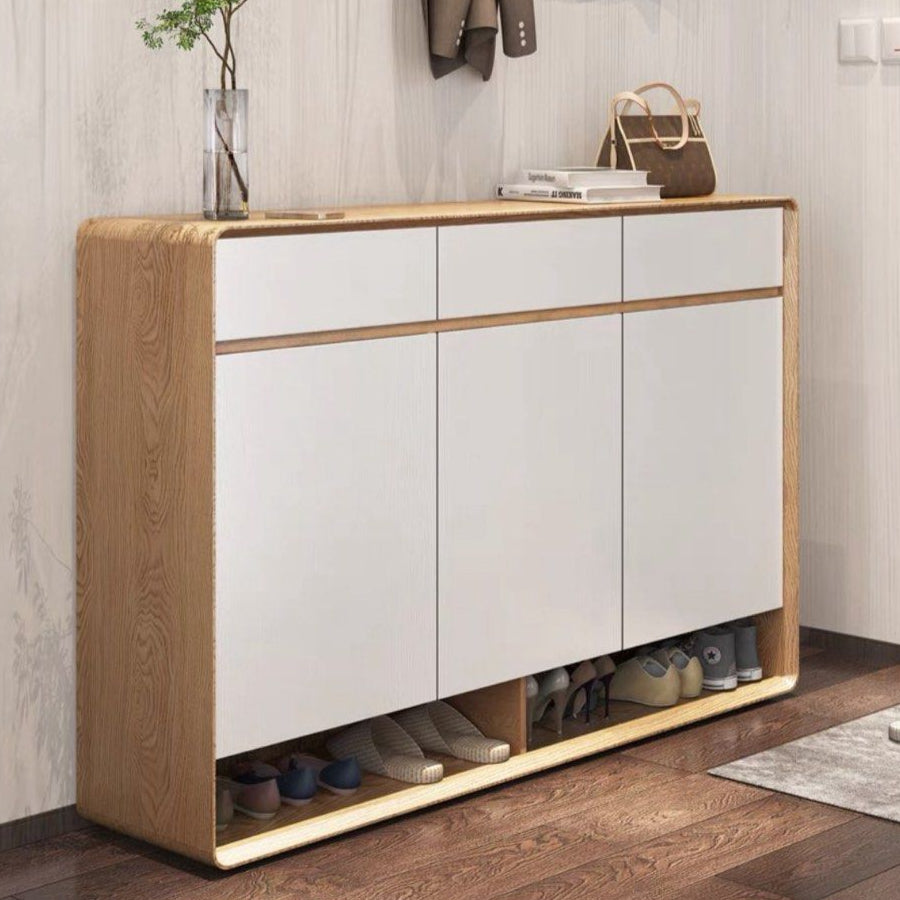 OFELIA Japandi Solid Wood Shoe Cabinet With Bench