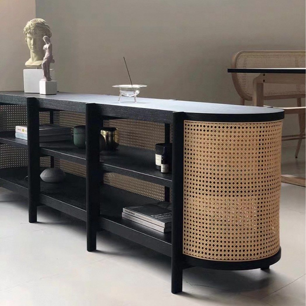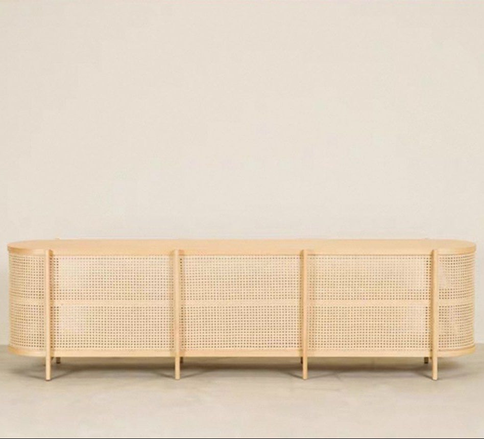Crafted from solid wood and natural rattan, the RIVECA console offers sophisticated storage with a touch of tropical elegance. Available in two versatile sizes to accommodate different spaces, this sideboard features durable construction and intricate weaving patterns that showcase artisanal craftsmanship. The perfect statement piece for both contemporary and bohemian interiors.