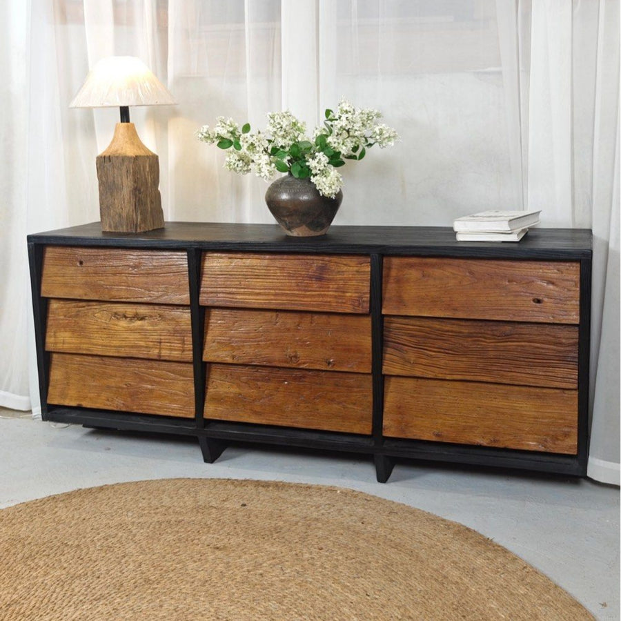 KEZIA Rustic Solid Wood Sideboard Cabinet