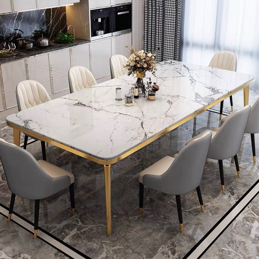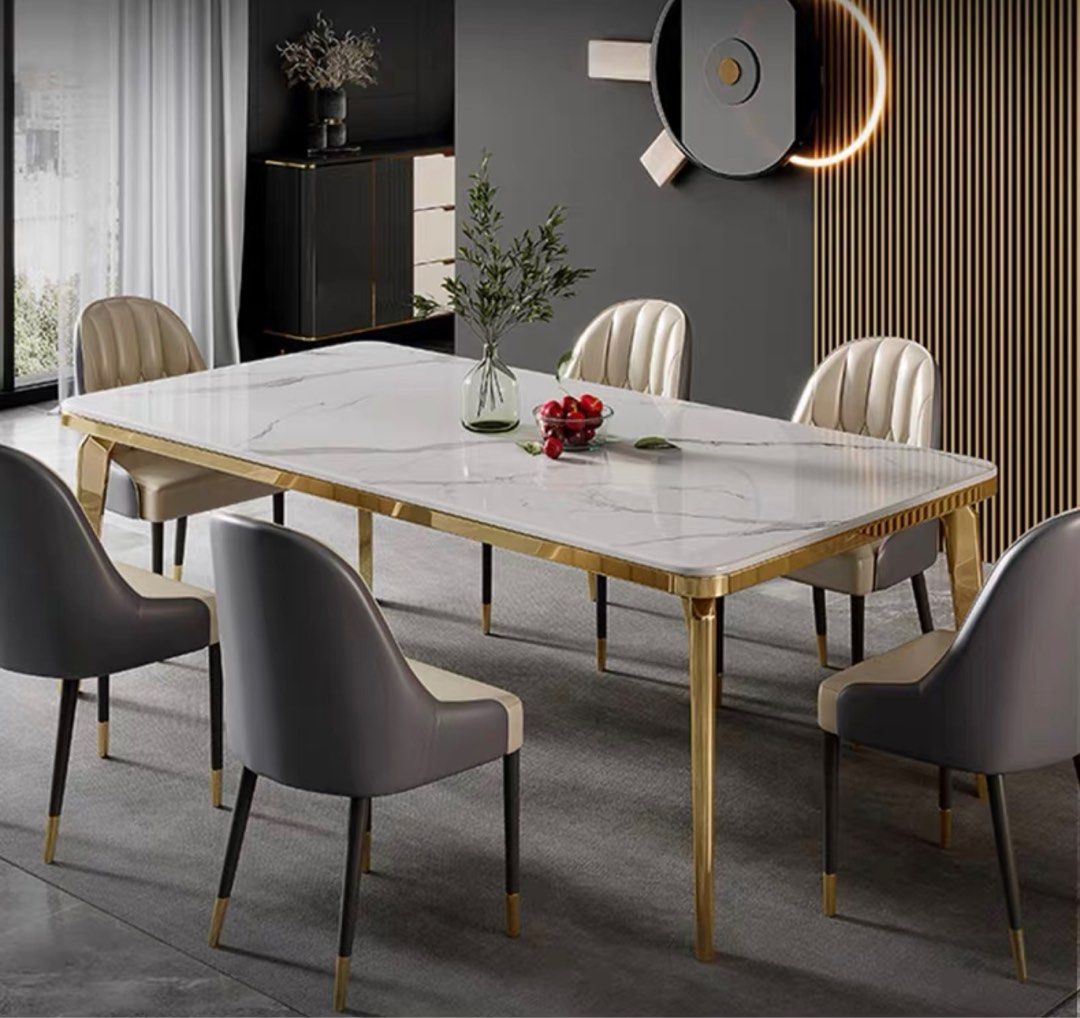 ATKINS Modern Sintered Stone Dining Table is a sleek and sophisticated piece of furniture designed for contemporary living spaces. Sintered stone is a durable and low-maintenance material, made by compacting and heating natural minerals to create a solid surface. This type of dining table typically features clean lines and a seamless surface, exuding a minimalist aesthetic.