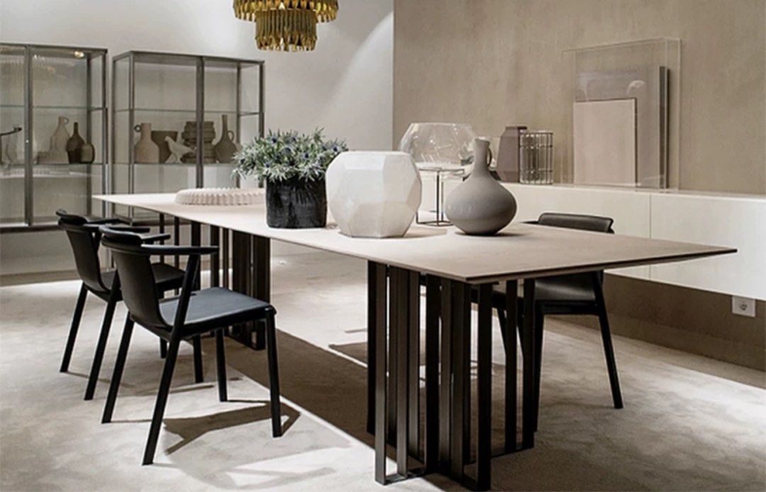 The KENNEDY Modern Sintered Stone Dining Table is a contemporary and sophisticated piece of furniture that seamlessly blends style with functionality. Crafted with precision and attention to detail, this dining table features a top surface made from sintered stone, contributing to its modern aesthetic and practicality. The tabletop is constructed from sintered stone, a high-performance engineered material known for its durability, resistance to scratches, stains, and heat. Sintered stone is created by compacting and sintering raw materials under high heat and pressure, resulting in a dense and resilient surface. This material provides a sleek and refined appearance, making it an ideal choice for a modern dining table.