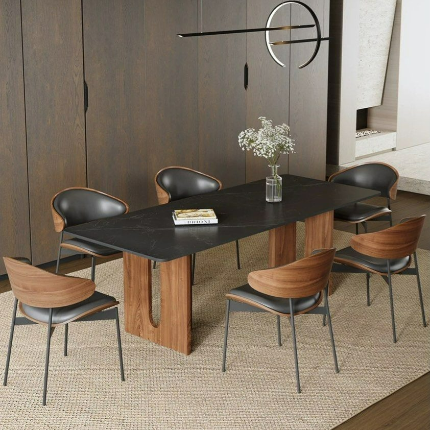 Upgrade your dining area with our Modern Sintered Stone Dining Table, a perfect blend of elegance and durability. Crafted with a sintered stone tabletop and a sleek ash wood base, this dining table adds a touch of sophistication to your space. The sintered stone provides a contemporary and resilient surface, while the ash wood base ensures stability and a natural aesthetic. Elevate your dining experience with the modern design and quality craftsmanship of our Sintered Stone Dining Table.