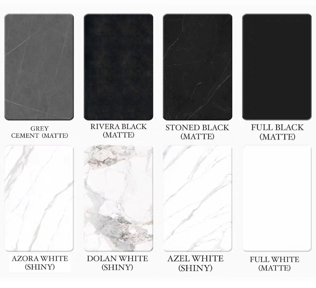 Grey cement / Rivera black / Stoned black / Full black / Azora white / Dolan white / Azel white / Full white