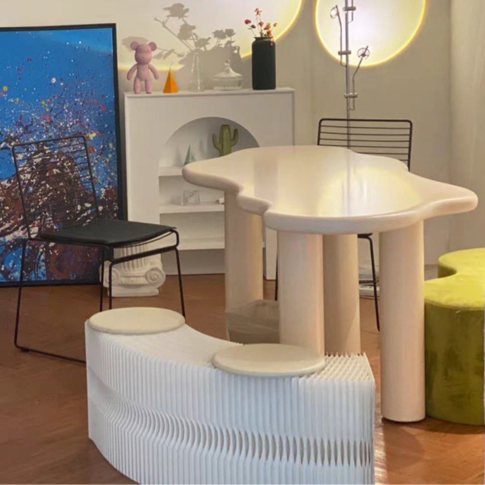 Elevate your dining area into a conversation starter with our FIACHRA dining table. Constructed from premium fiberboard, it boasts an unconventional cloud-shaped silhouette. This table embodies a blend of contemporary and enduring styles, fostering a warm ambiance perfect for gatherings. Its cloud-inspired motif introduces a distinct flair to any modern, contemporary, or hygge-themed dining space, delivering a bold statement while maintaining functionality.