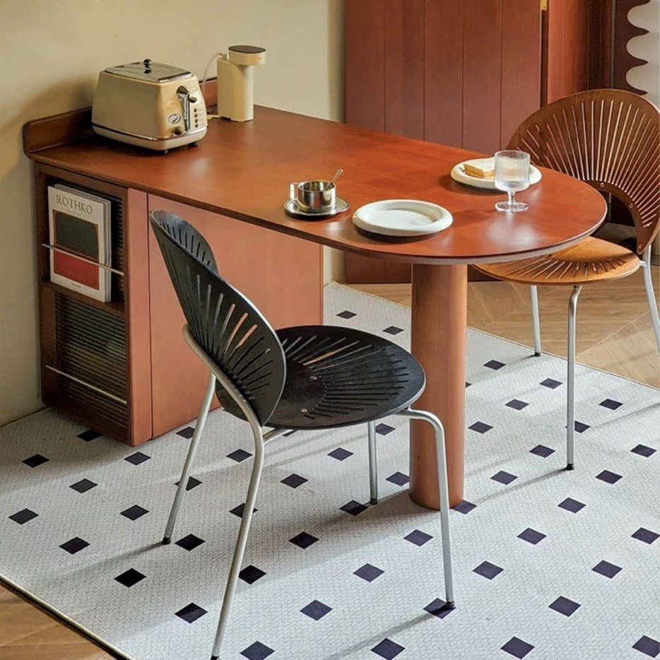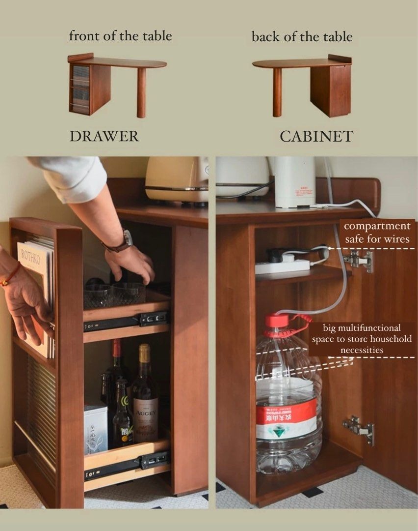The FONSECA Modern Walnut Island Dining Table features a sleek design with a rich walnut finish. Its standout feature is the built-in drawer and cabinet, providing convenient storage for dining essentials. The table’s front showcases clean lines and a minimalist aesthetic, while the back maintains a cohesive design, allowing for versatile placement in your dining space. The combination of functionality and modern aesthetics makes it an ideal choice for contemporary interiors.