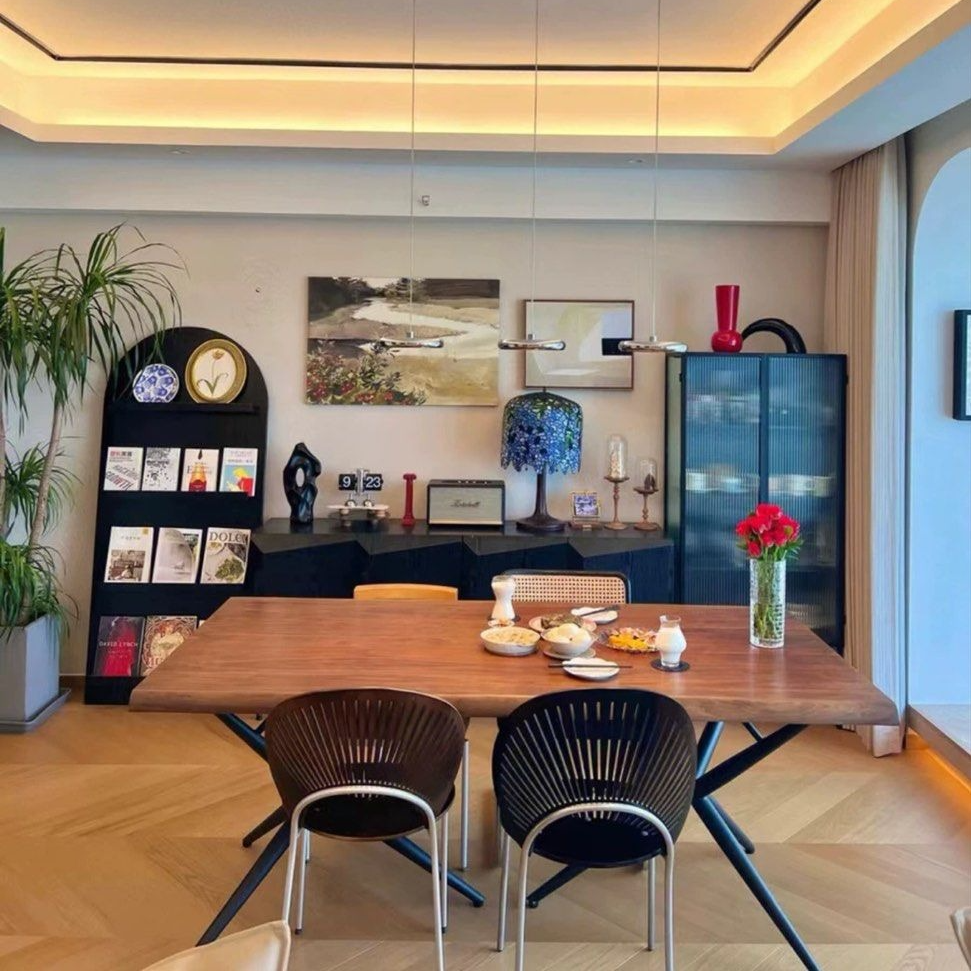The HEARNS Rustic Solid Wood Dining Table brings a touch of rustic charm to your dining area. Crafted from solid wood with a distressed finish, this table showcases the natural beauty and character of the wood grain. Its sturdy construction and spacious tabletop make it perfect for family meals and gatherings. The HEARNS table’s rustic design and warm tones create a welcoming and cozy atmosphere, adding a touch of country style to your home.