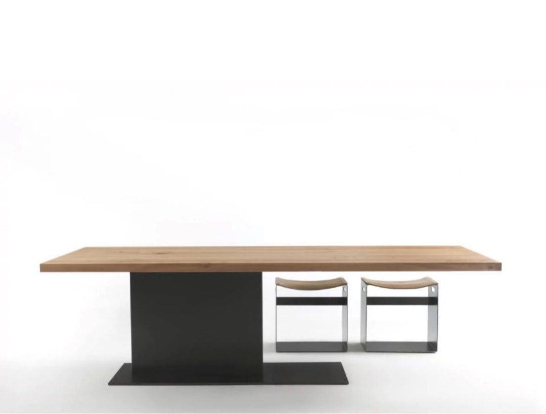 The LINARES Industrial Solid Wood Dining Table fuses raw, natural materials with industrial design to create a striking centerpiece for any modern space. Crafted from premium New Zealand pine wood, the tabletop showcases a rich, warm grain, each knot and texture telling the story of its organic origin. Supported by a robust powder-coated iron base, the table's geometric form and matte finish add a bold industrial contrast, bringing strength and sophistication to its minimalistic design. The LINARES table is a powerful statement of durability and style, perfectly suited for those who appreciate the fusion of nature and modern craftsmanship.
