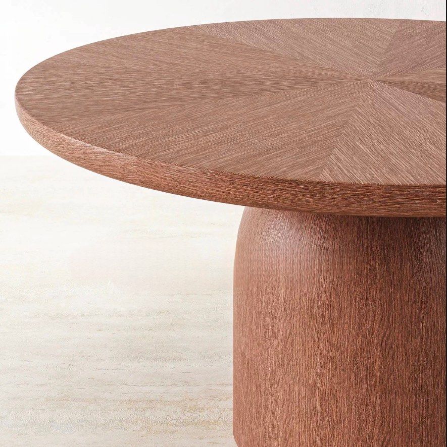 The VOELN Modern Herringbone Solid Wood Dining Table is a stunning centerpiece that blends timeless craftsmanship with contemporary elegance. Its standout feature is the meticulously crafted herringbone-patterned tabletop, showcasing the natural grain and warm tones of solid wood in a design that radiates sophistication. The intricate detailing of the herringbone inlay adds visual interest, making this table a true work of art.Supported by sturdy, geometric legs with a modern flair, the VOELN dining table combines durability with aesthetic appeal. The legs, crafted from the same high-quality wood provide a strong foundation while creating an open, airy feel that complements the sleek tabletop. The table's smooth finish enhances its natural beauty while protecting it from everyday wear and tear.