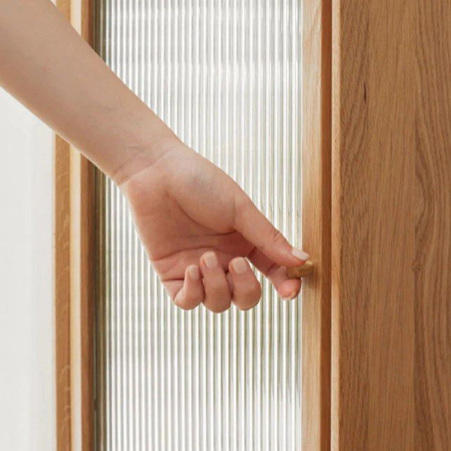 DARBY Solid Wood Cabinet is a sophisticated and elegant piece of furniture that beautifully blends natural wood elements with the transparency of fluted tempered glass. This combination creates a contemporary design that can complement a variety of interior styles.
