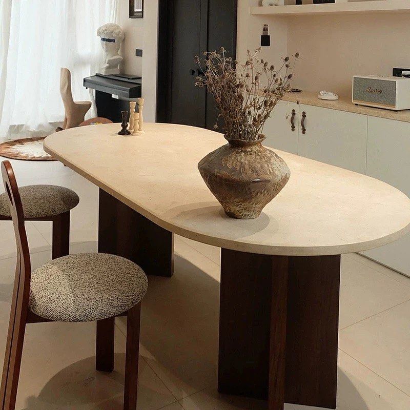 CLARENCE Japandi Travertine Sintered Stone Dining Table
