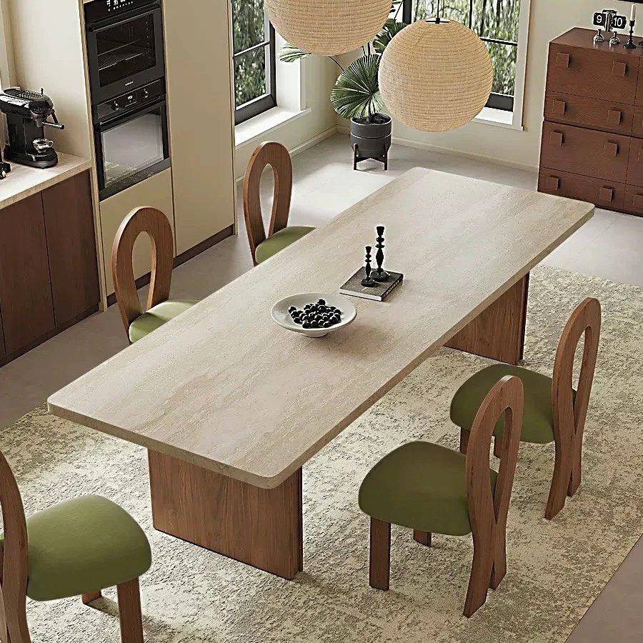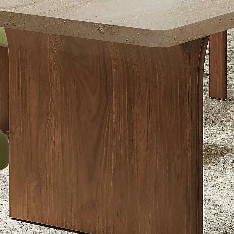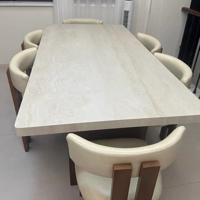 Introducing our SANTOSO Modern Travertine Dining Table, featuring a durable sintered stone top with the elegant look of travertine. Made to last, this table adds a touch of sophistication to any dining room. Experience the beauty of natural stone without the maintenance.