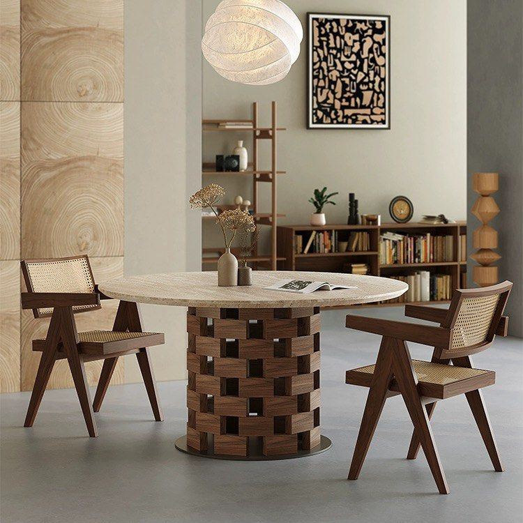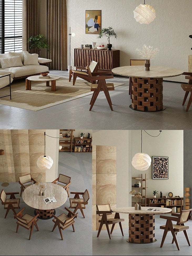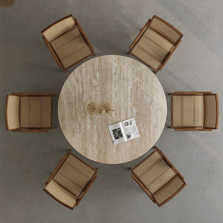 The VENICE Modern Round Travertine Dining Table is an elegant and contemporary piece that embodies minimalist design. This table features a solid travertine top and a streamlined cylindrical pedestal base, emphasizing simplicity and the natural beauty of the stone. The travertine’s honed finish showcases its organic variations in tone and texture, making each table unique.